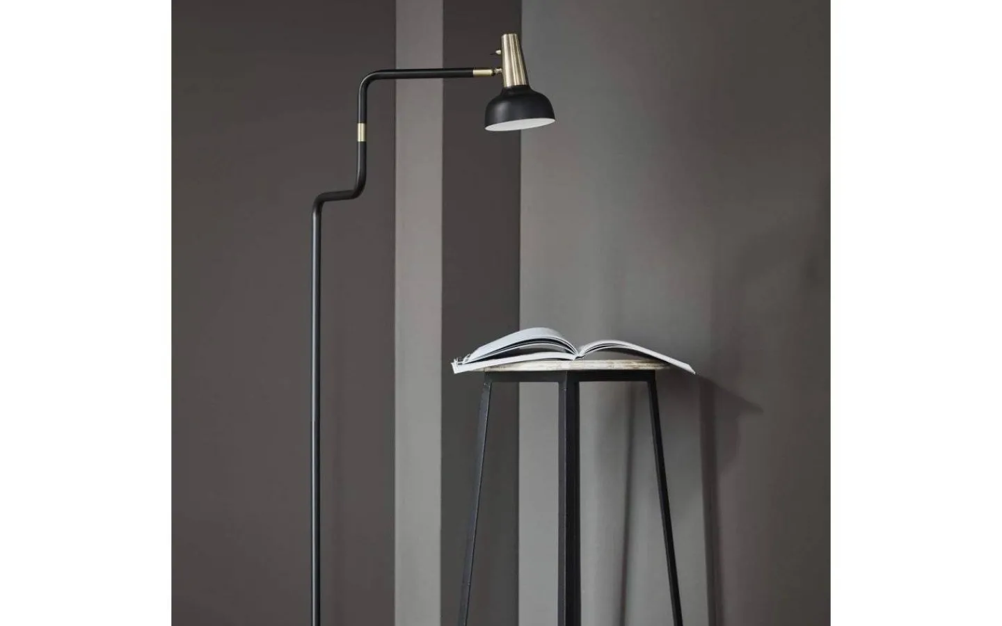 Lampans arm är justerbar i sidled och lamphuvudet är riktbart så du enkelt kan justera riktningen på ljuset efter eget önskemål. Stommen är gjord av svartlackerad metall med detaljer i mässing med en oxiderad (mörkare) slipad finish. Placera Ray golvlampa vid soffan eller favoritfåtöljen och få en läslampa i toppklass!