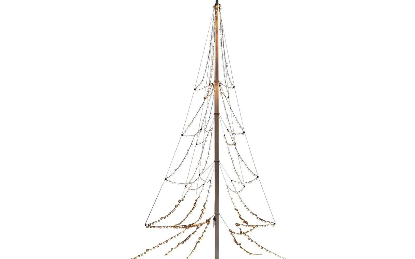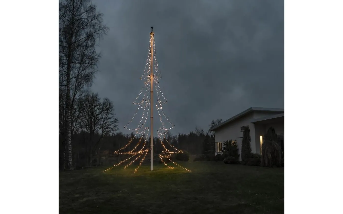 Gran från välkända Konstsmide är en dekorativ flaggstångsbelysning med formen av en gran. Flaggstångsslingan är uppdelad i 5 längder med 137st små LED-lampor på varje slinga som lyser upp i ett extra varmvitt ljussken.