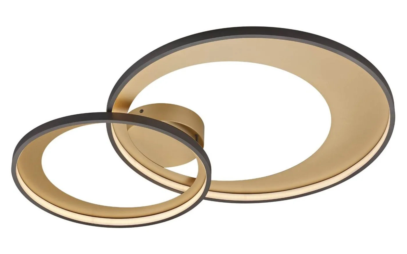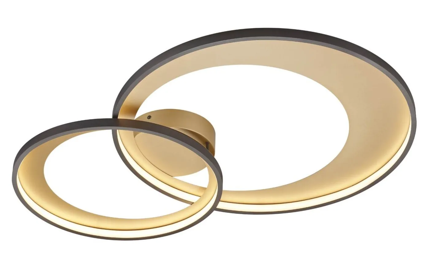 ENKELT GLÄNSIGT – Enkel design för eleganta interiörer. Metalllampor i guld kan användas för att skapa glänsande accentueringar i tak och väggar. Höjdpunkten: ljuset verkar särskilt varmt och mysigt. Med en modern och ovanlig design skapar denna GRANADA-serie ett slående blickfång i ditt vardagsrum. Armaturen har en SWITCH-dimmer, vilket gör att armaturen kan dimras stegvis (100 %, 50 % och 25 %) med hjälp av den vanliga ljusströmbrytaren. GRANADA taklampa är designad i svart metall. Detta gör den lämplig för en mängd olika inredningsstilar. Den gyllene sockeln avrundar lampans eleganta design. Dessutom har armaturerna modern LED-teknik, vilket står för hög ljuskvalitet. LED-ljuskällor kännetecknas av lång livslängd och låg värmeutveckling. Ljuskälla: inklusive 1x SMD, 36W · 1x 4300lm, 3000K. Extra information: Takmontering, IP20, Dimbar via strömbrytare