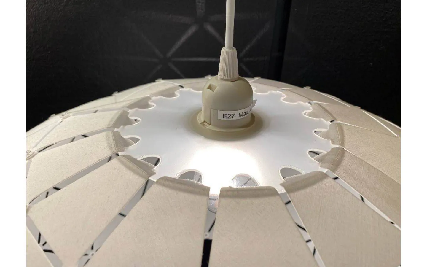 LATTICE dekorativ takpendel i vit textil med laminerad insida, 40W E27 (ingår ej). Krokupphäng med takkopp i vit plast.