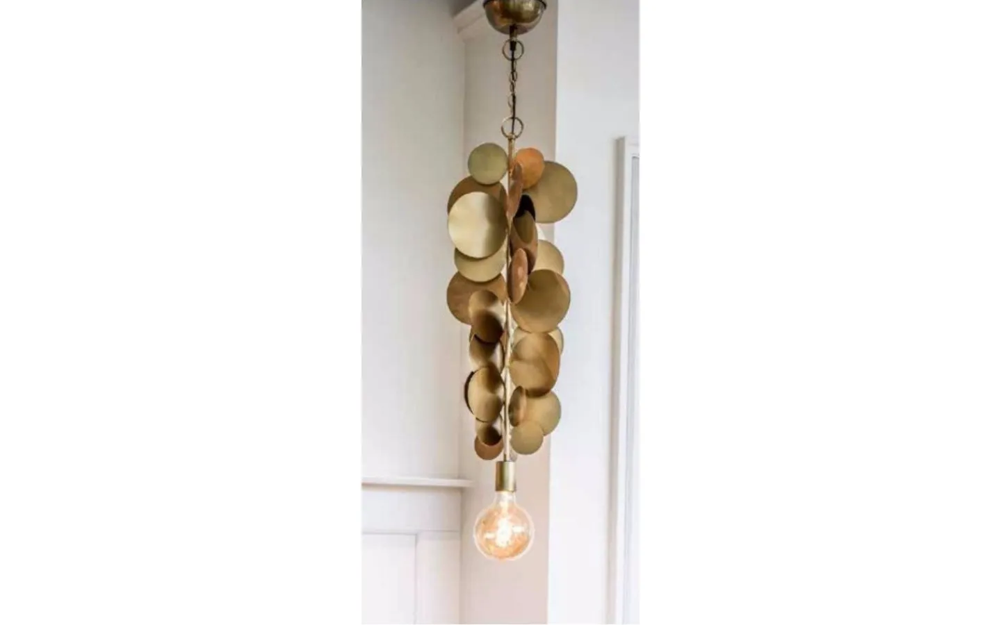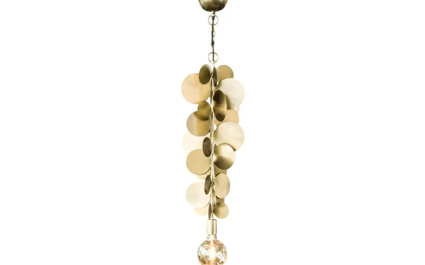 Fina Art taklampa från svenska varumärket Hallbergs – Lighting of Sweden, är en vacker taklampa som är gjord av mässingsfärgad metall. Designen är lekfull, modern och tidlös. Med kedja och takkopp i matchande färg är den enkel att placera, komplettera med en dekorativ ljuskälla och få en riktig blickfångare i ditt hem!