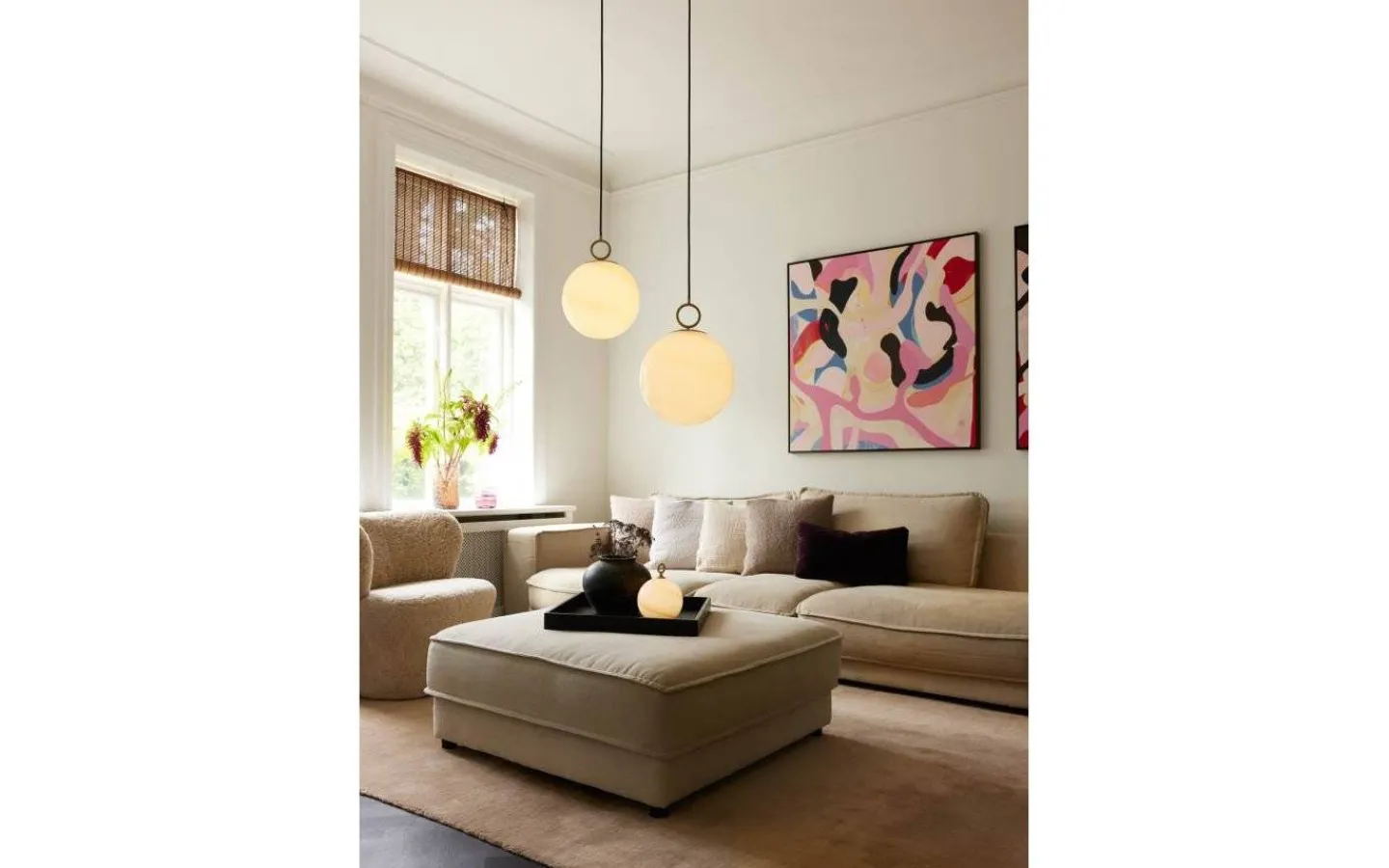 Tyngdpunkten har lagts på skapandet av vackra detaljer där glaskupolen som är i blankt opalglas har ett färgat motiv som ger en marmoreffekt som sedan kombinerats med vackra detaljer i mässing för extra lyxig känsla.