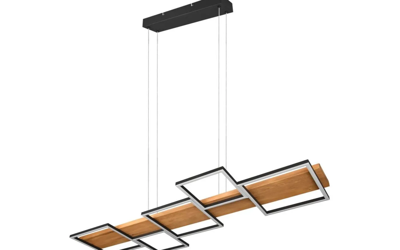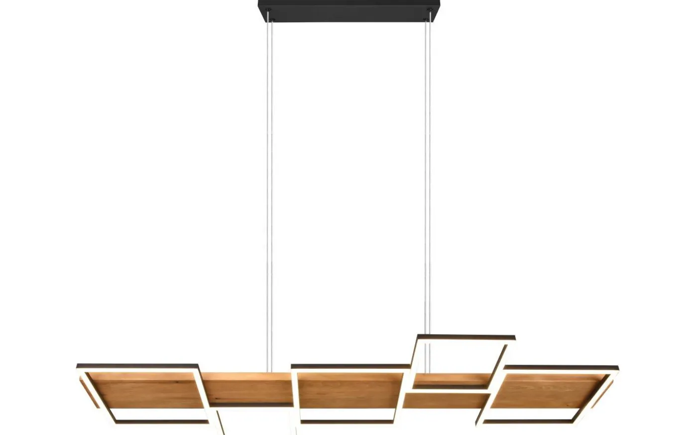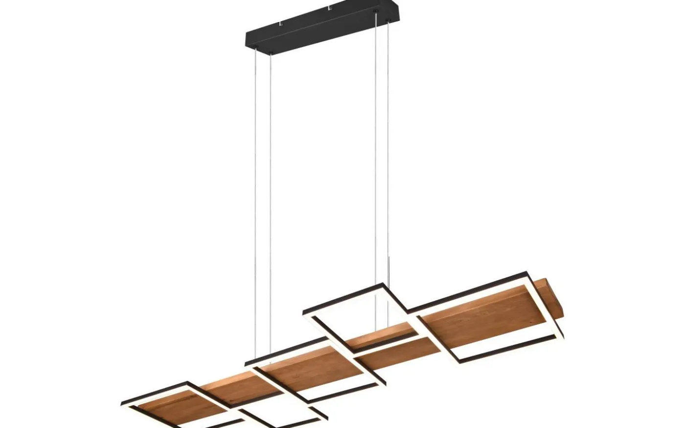 HARPER pendellampa utlovar mysighet och elegans i ditt hem med sin moderna design. Kombinationen av material trä och metall understryker den eleganta boendestilen och ger med de fem fyrkantiga ljuselementen en behaglig belysning ovanför matbordet. Dessutom är armaturen utrustad med en SWITCH-dimmer, vilket gör att ljusstyrkan kan graderas från 100 %, till 50 % och till 25 % via en vanlig ljusströmbrytare. Det naturliga träet och metallen i mattsvart gör lampan till en riktig pärla i ditt vardagsrum, som garanterat blir en blickfångare. Dessutom har armaturerna modern LED-teknik, vilket står för hög ljuskvalitet. LED-ljuskällor kännetecknas av lång livslängd och låg värmeutveckling. Ljuskälla: inklusive 1x SMD LED, 42W · 1x 5700lm, 3000K. Extra information: Justerbar i höjd, Takmontering, IP20, Ej dimbar, Ej lämplig för extern dimmer, Dimbar via strömbrytare