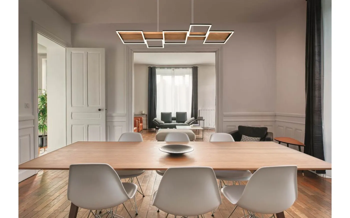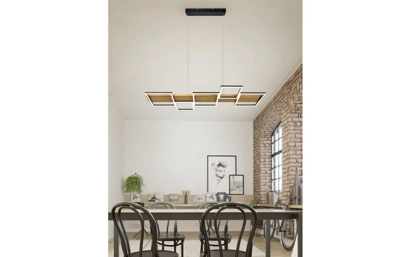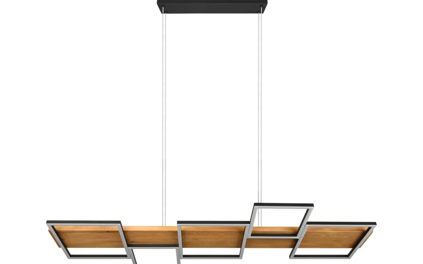 HARPER pendellampa utlovar mysighet och elegans i ditt hem med sin moderna design. Kombinationen av material trä och metall understryker den eleganta boendestilen och ger med de fem fyrkantiga ljuselementen en behaglig belysning ovanför matbordet. Dessutom är armaturen utrustad med en SWITCH-dimmer, vilket gör att ljusstyrkan kan graderas från 100 %, till 50 % och till 25 % via en vanlig ljusströmbrytare. Det naturliga träet och metallen i mattsvart gör lampan till en riktig pärla i ditt vardagsrum, som garanterat blir en blickfångare. Dessutom har armaturerna modern LED-teknik, vilket står för hög ljuskvalitet. LED-ljuskällor kännetecknas av lång livslängd och låg värmeutveckling. Ljuskälla: inklusive 1x SMD LED, 42W · 1x 5700lm, 3000K. Extra information: Justerbar i höjd, Takmontering, IP20, Ej dimbar, Ej lämplig för extern dimmer, Dimbar via strömbrytare
