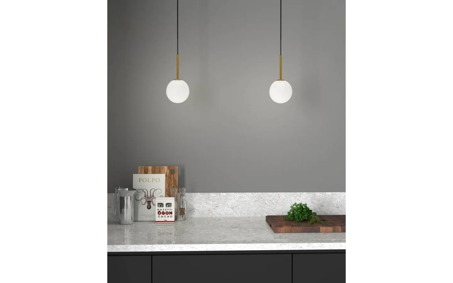 Ballon fönsterlampa från Herstal är en stilren fönsterlampa med ett opalvitt munblåst glas och detaljer i mässingsfärgad metall.