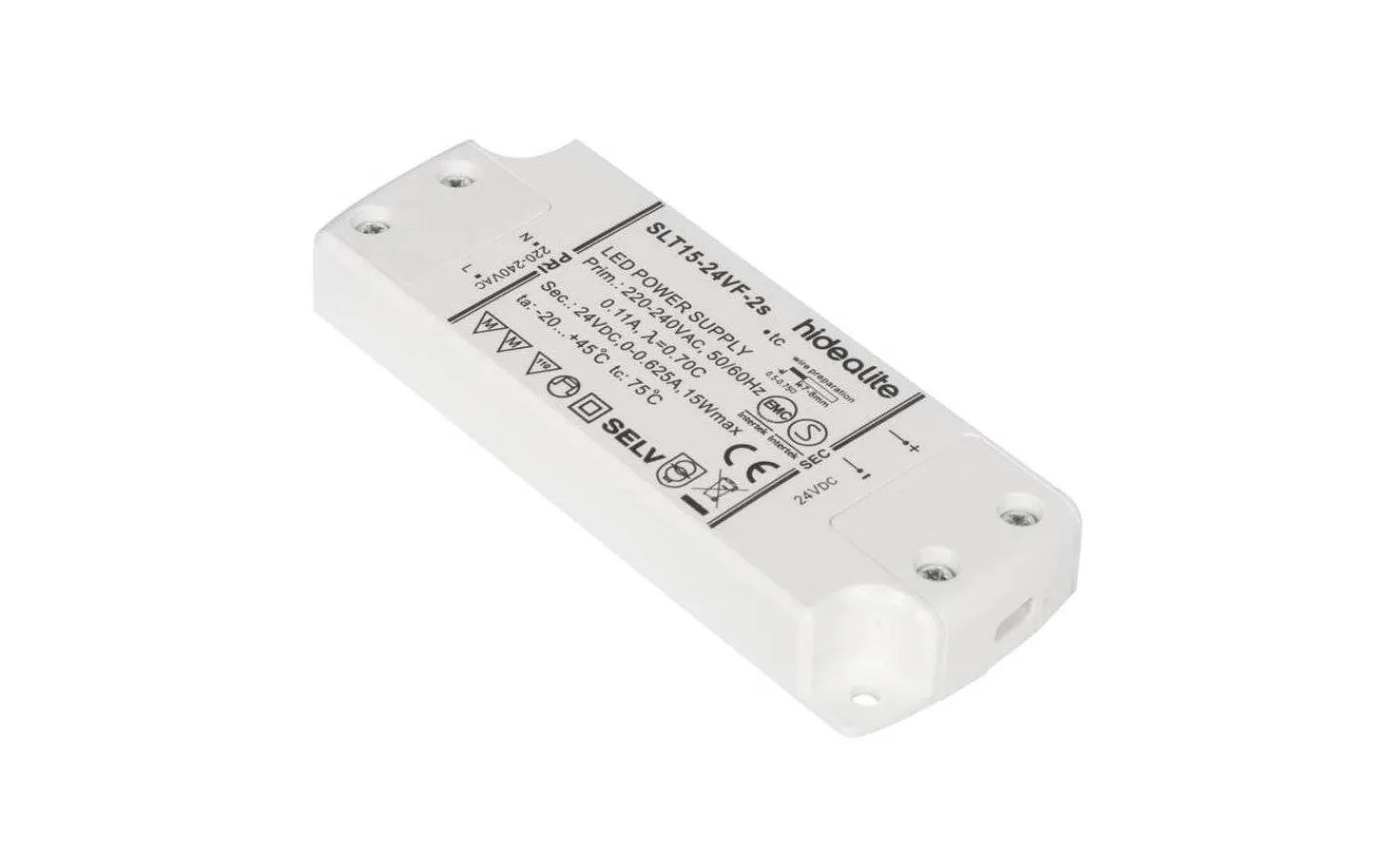 Likspänningstransformator för 24V LED med den senaste tekniken och ett bredd effektområde. Transformatorn kan belastas från 0 upp till max effekten på 15W. Med sin IP20-klassning är den endast avsedd för att användas inomhus / i torra utrymmen.