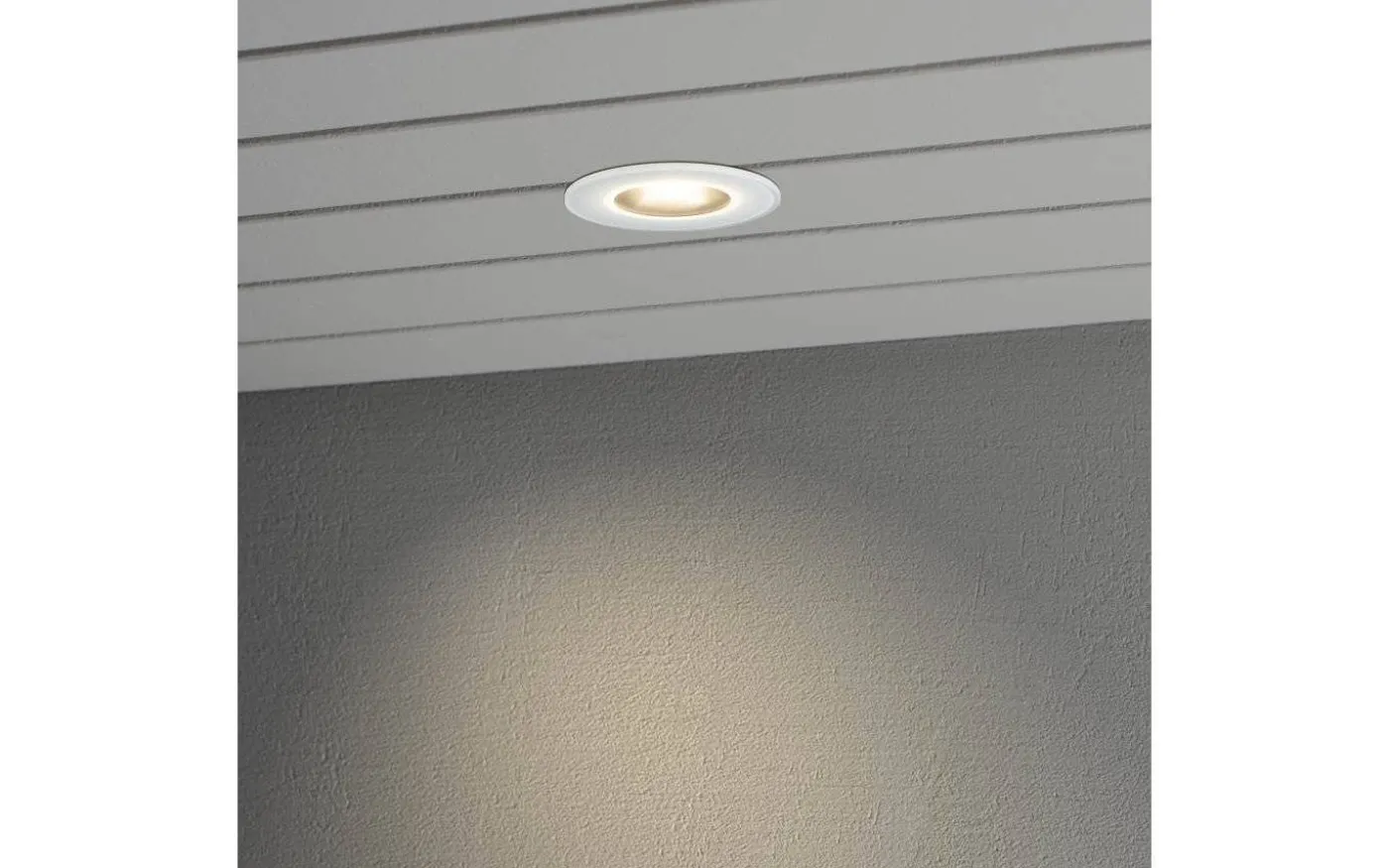 Högkvalitativ och stilren armatur med front i vitt glas. Takspotlighten avger ett kraftfullt ljus som sprider sig 25° med 6W integrerad LED motsvarande 540 Lumen och en färgtemperatur på 3000 Kelvin. Avsedd för infällt montage med 230V.