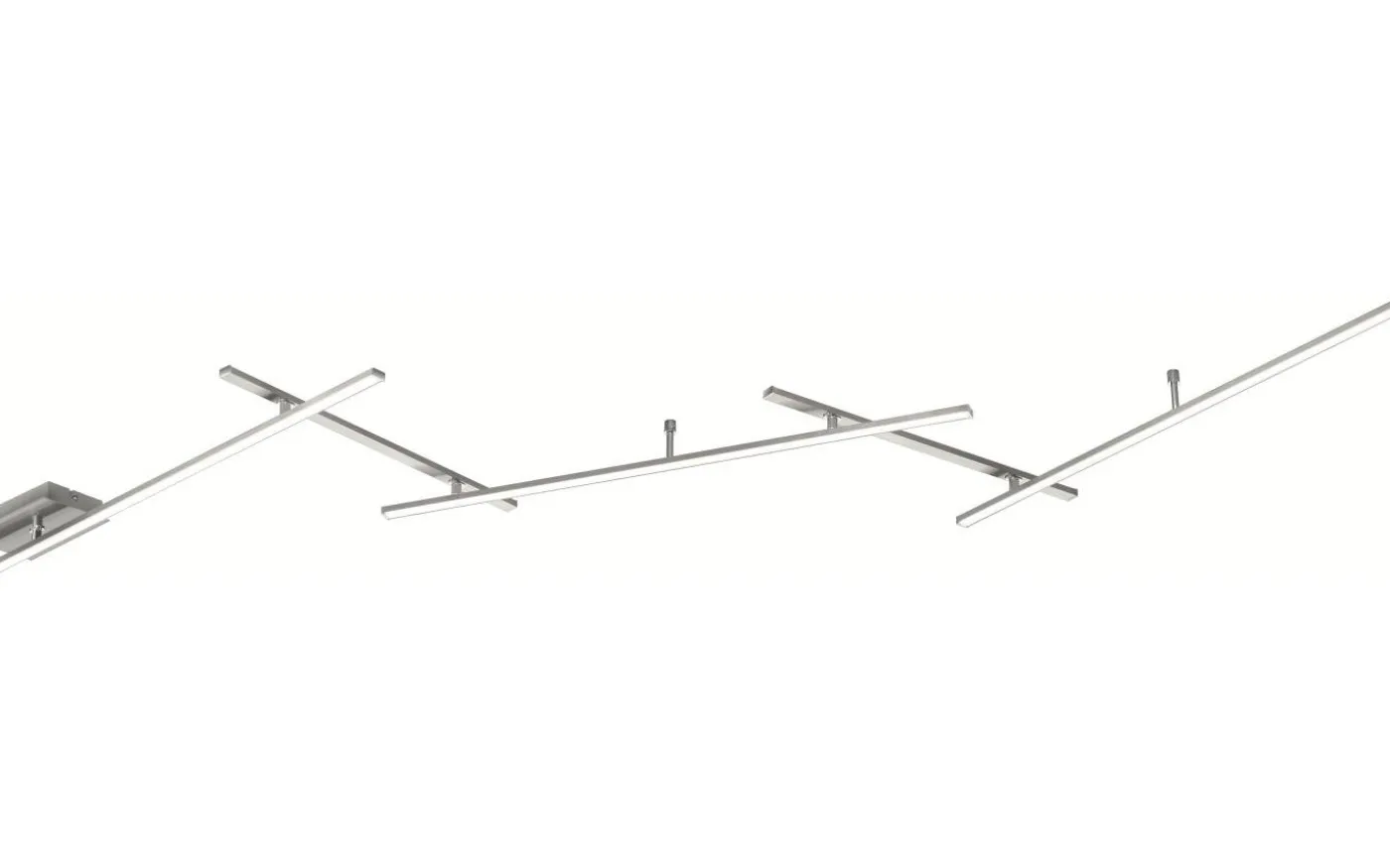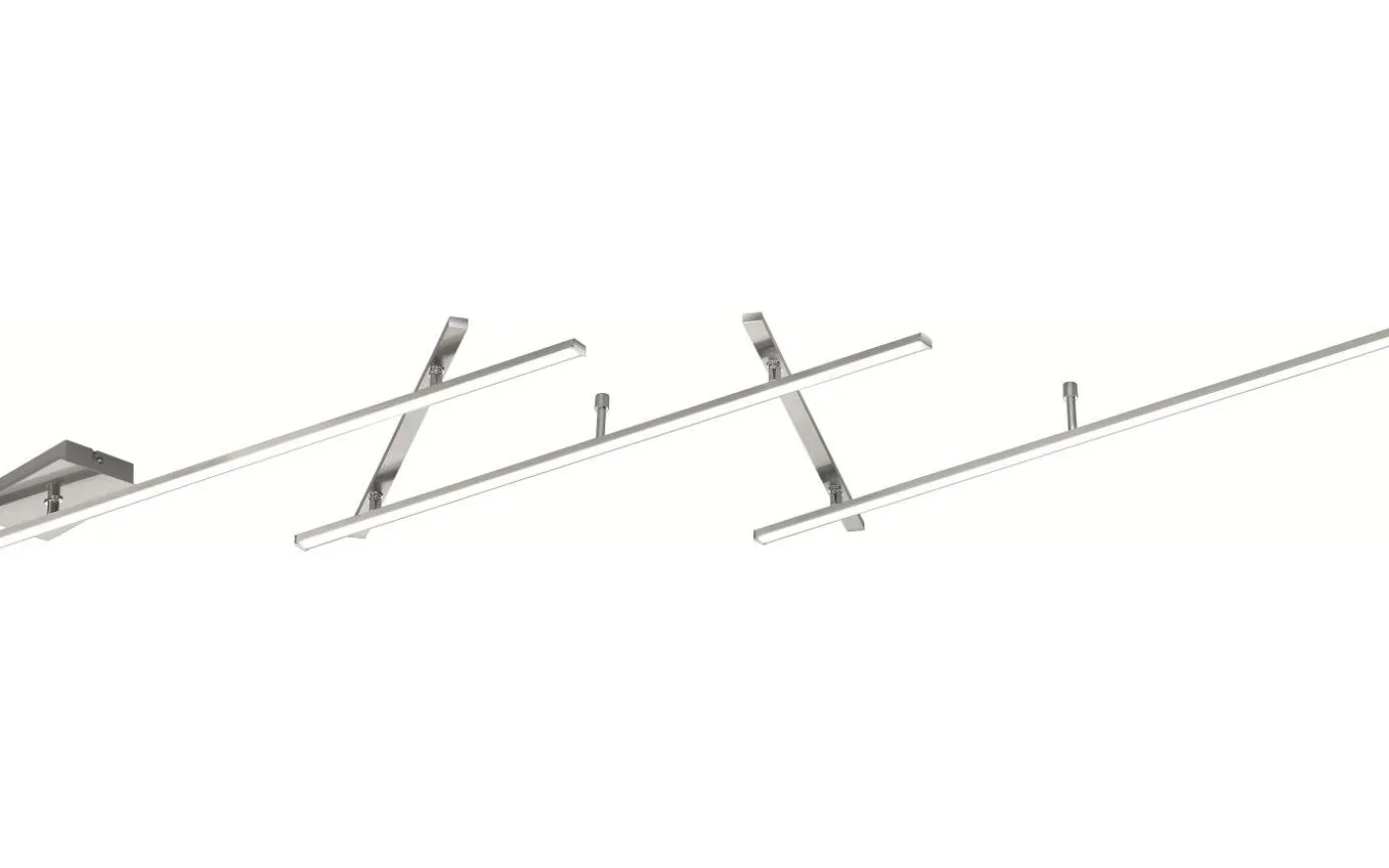 Ovanlig och individuell – vägg- och taklampan INDIRA. Denna ovanliga armatur har tre längre element med den ljusavgivande ytan nedåt och två kortare element med den ljusavgivande ytan uppåt. På så sätt skapar armaturen direkt och indirekt belysning, vilket ger en behaglig ljusintensitet. De vridbara elementen kan användas för att skapa olika mönster och uppnå en bredd på upp till 245 cm. INDIRA har också en SWITCH-dimmer så att armaturen kan dimmas till tre nivåer med en vanlig ljusströmbrytare. Armaturen kan installeras som vägg- eller takarmatur, vilket möjliggör olika användningsområden som hallen eller köket. Armaturen är tillverkad av metall och högkvalitativ akryl och kan enkelt integreras i olika färgscheman tack vare sin matta nickelfinish. Dessutom har armaturerna modern LED-teknik, vilket står för hög ljuskvalitet. LED-ljuskällor kännetecknas av lång livslängd och låg värmeutveckling. Ljuskälla: inklusive 1x SMD LED, 25W · 1x 3000lm, 3000K. Extra information: IP20, Ej lämplig för extern dimmer, Dimbar via strömbrytare, Upp- och nedbelysning, Vägg- och takmontering