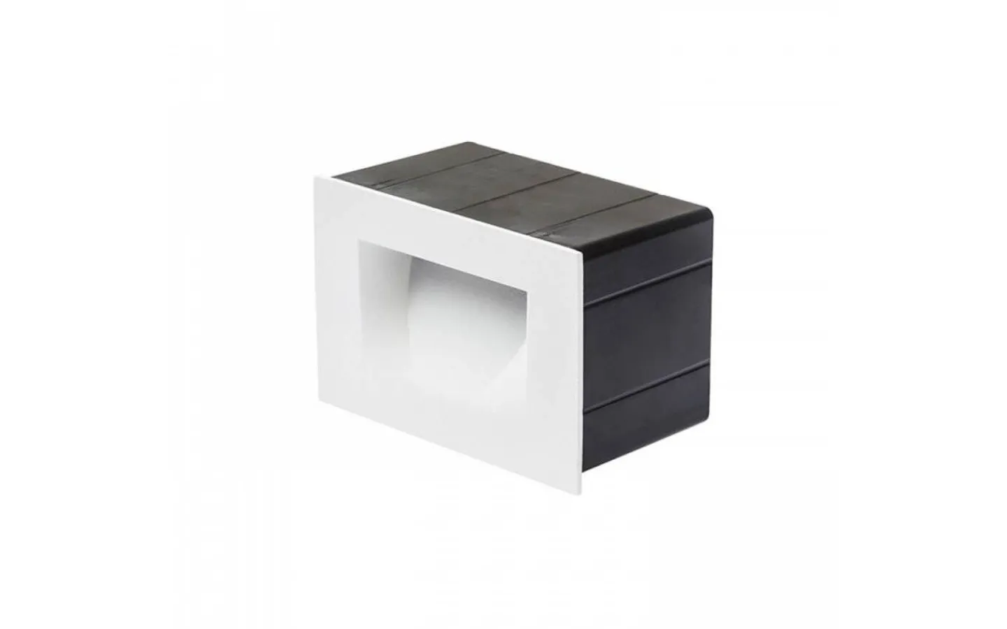 Per vägglampa är gjord i vitlackerad metall och har integrerad (inbyggd) ljuskälla i LED med låg energiförbrukning och lång livslängd. Med en ljusstyrka på endast 76 lm avger den ett behagligt ledljus som blir en snygg effekt, oavsett placering. Med sin IP54-klassning är den väl anpassad för utomhusbruk men kan även användas inomhus, i en långsmal hall eller i en trappa. Levereras komplett med drivdon.