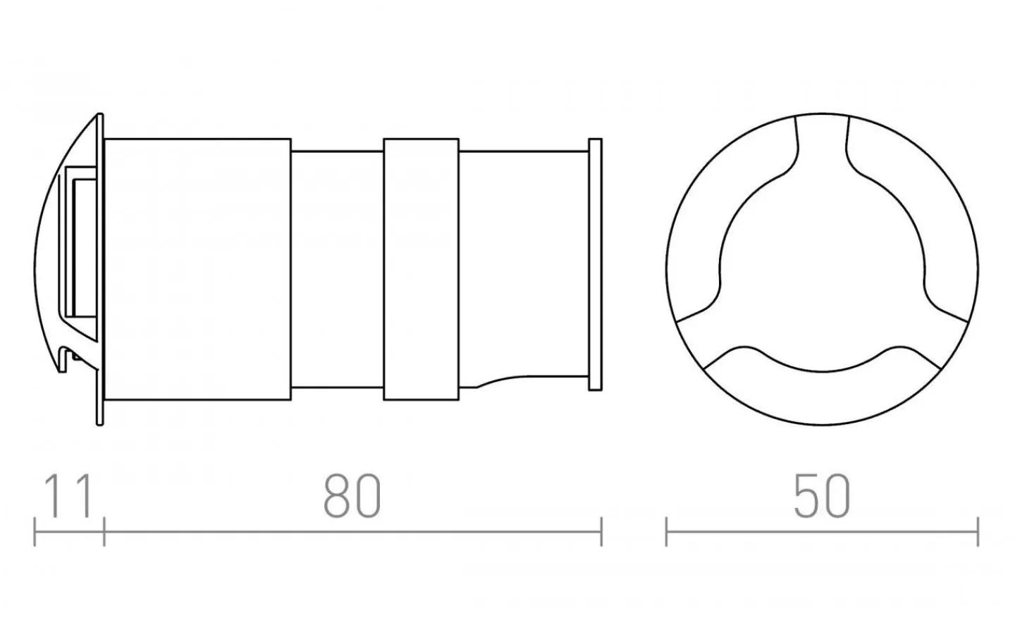 Infällt ledljus med inbyggd LED som lyser åt tre håll.