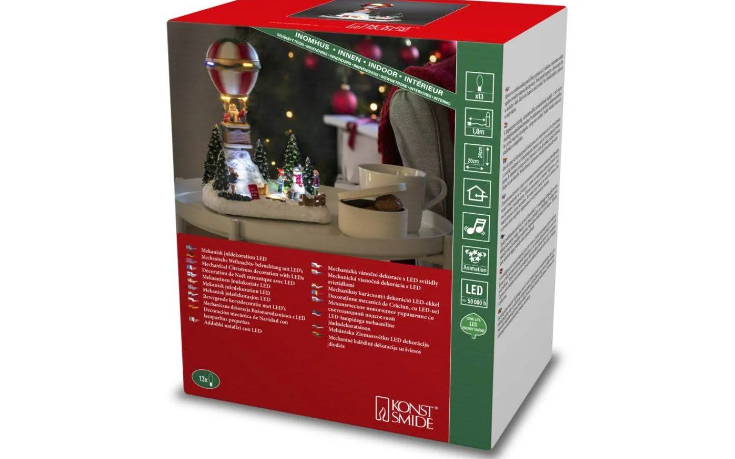 Härlig juldekoration från välkända Konstsmide i form av en tomte i luftballong. Denna vackra juldekoration lyser vackert upp och skapar verkligen en härlig julkänsla!