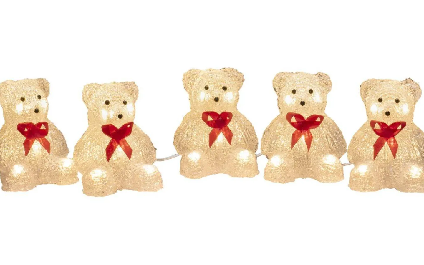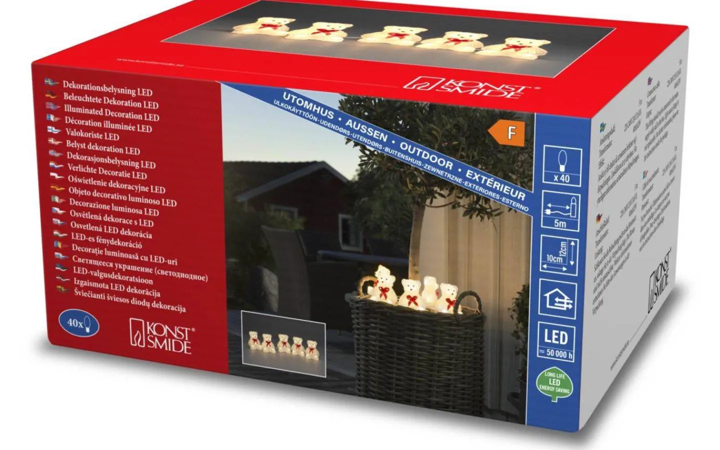 Dekorativ ljusslinga med små björnar i akryl. Denna ljusslinga från Konstsmide blir helt klart en härlig utomhusdekoration till jul!