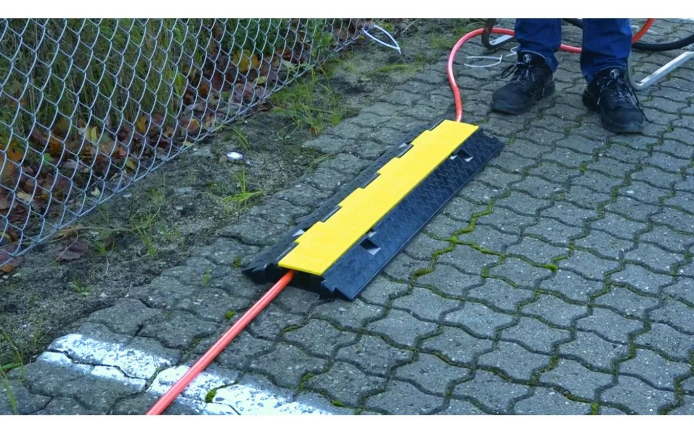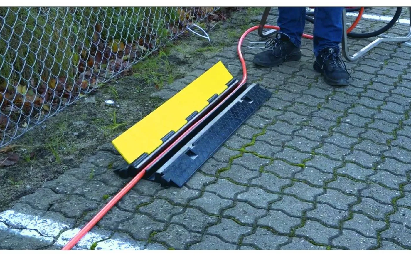 Mindre kabelbrygga för skydd av kablar, rör m.m. vid tillfälliga installationer. Kabelbryggan är utbyggbar till önskad längd. Stomme av gummi och lock av PE/PVC med gångjärn av förstärkt fiberglas. Kabelgenomgångar i 2 sektioner á 30×25 mm.