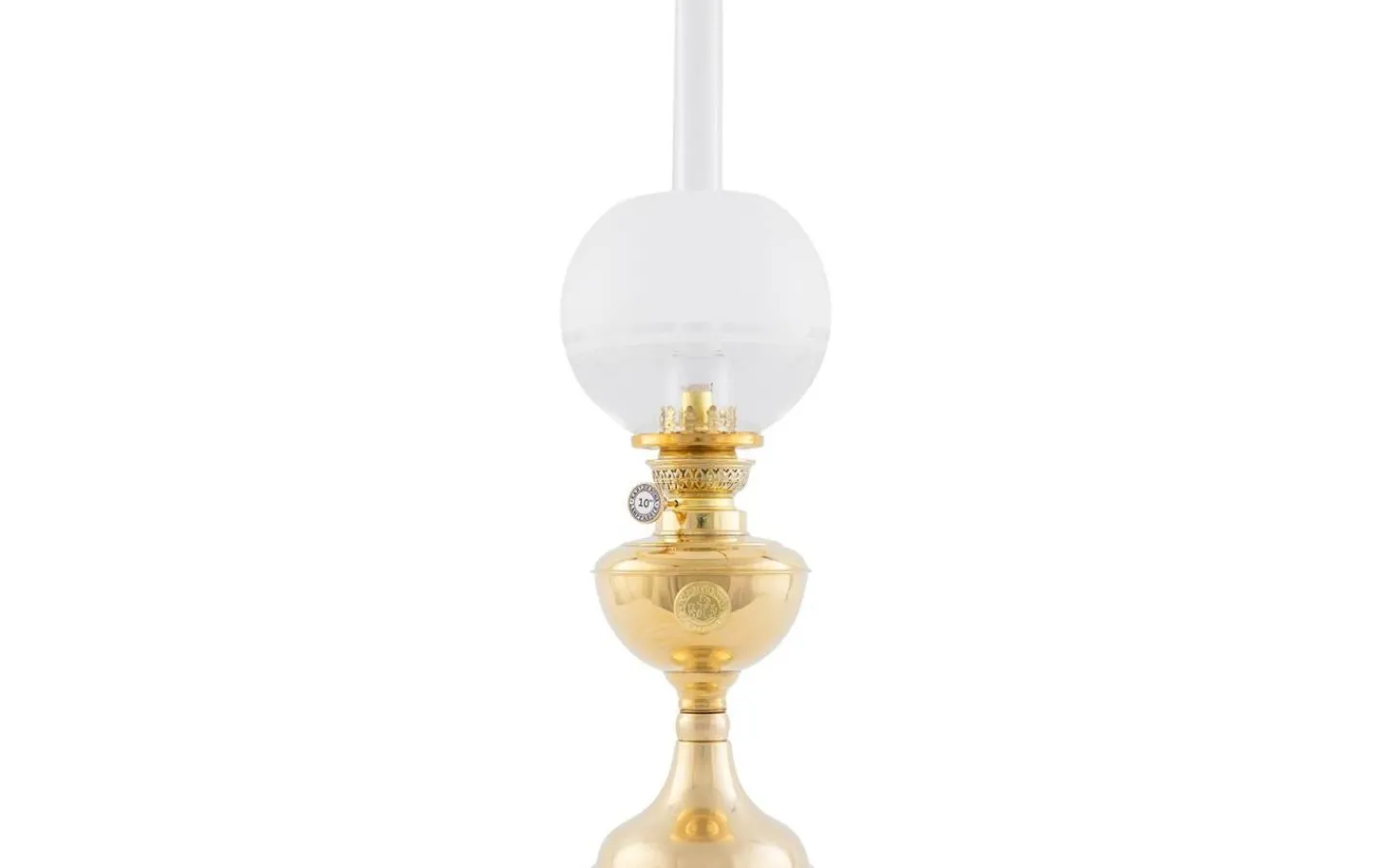 En klassisk fotogenlampa med oljehus i mässing, som passar särskilt väl in i marina miljöer.