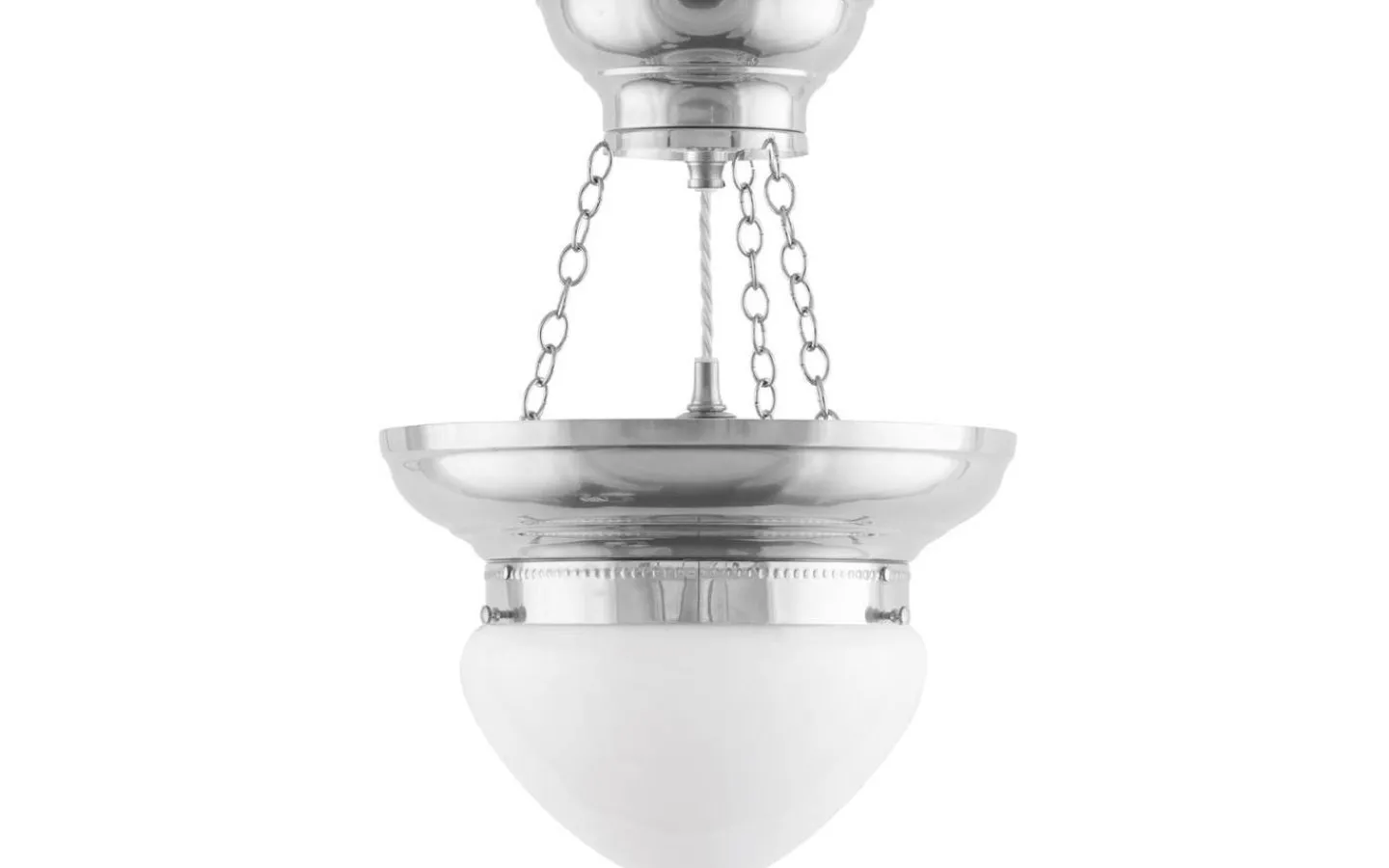 Frödingamplarna – som är tillverka helt i mässing – har ett tydligt klassicerande formspråk. Lampan är försedd med tre ljuskällor för en jämnare och behagligare ljusbild, vilket är särskilt viktigt vid användandet av slipade kristallglas. Kan förlängas upp till 100 cm med en ampelförlängning (20cm) och ytterligare kätting (80cm). Kan hängas på krok eller skruvas mot taket (c/c 60-70mm). Önskar man gå in med kuloledning från sidan borrar man upp ett hål i takkåpans kant.