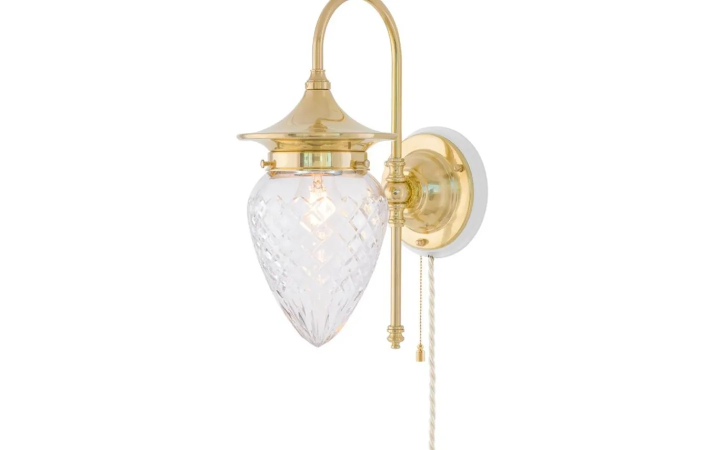Karlskrona Lampfabrik Fryxell – Mässing / Brytare / Vitt fäste* Lampetter