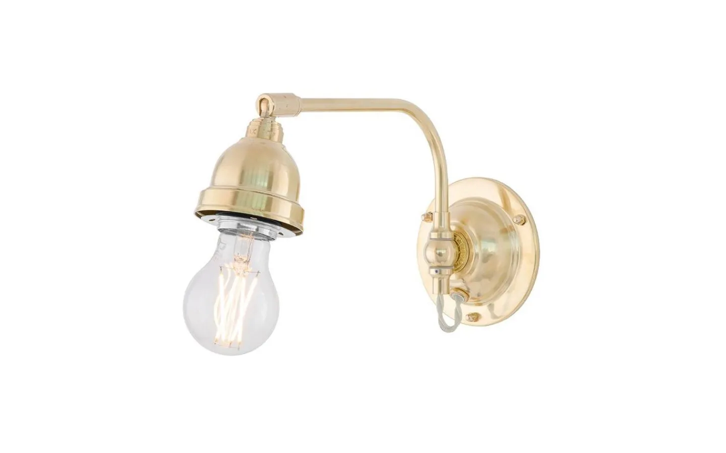 Klassisk väggarmatur med vrid- och riktbar arm, framförallt avsedd som sängbelysning. Kan med sitt flexibla fäste förses med antingen textil- eller metallskärm, eller möjligen en glasskärm, vilket dock lämpar sig sämre vid en säng. För fast montage. För att gå in med kuloledning kompletteras med en distansplatta.