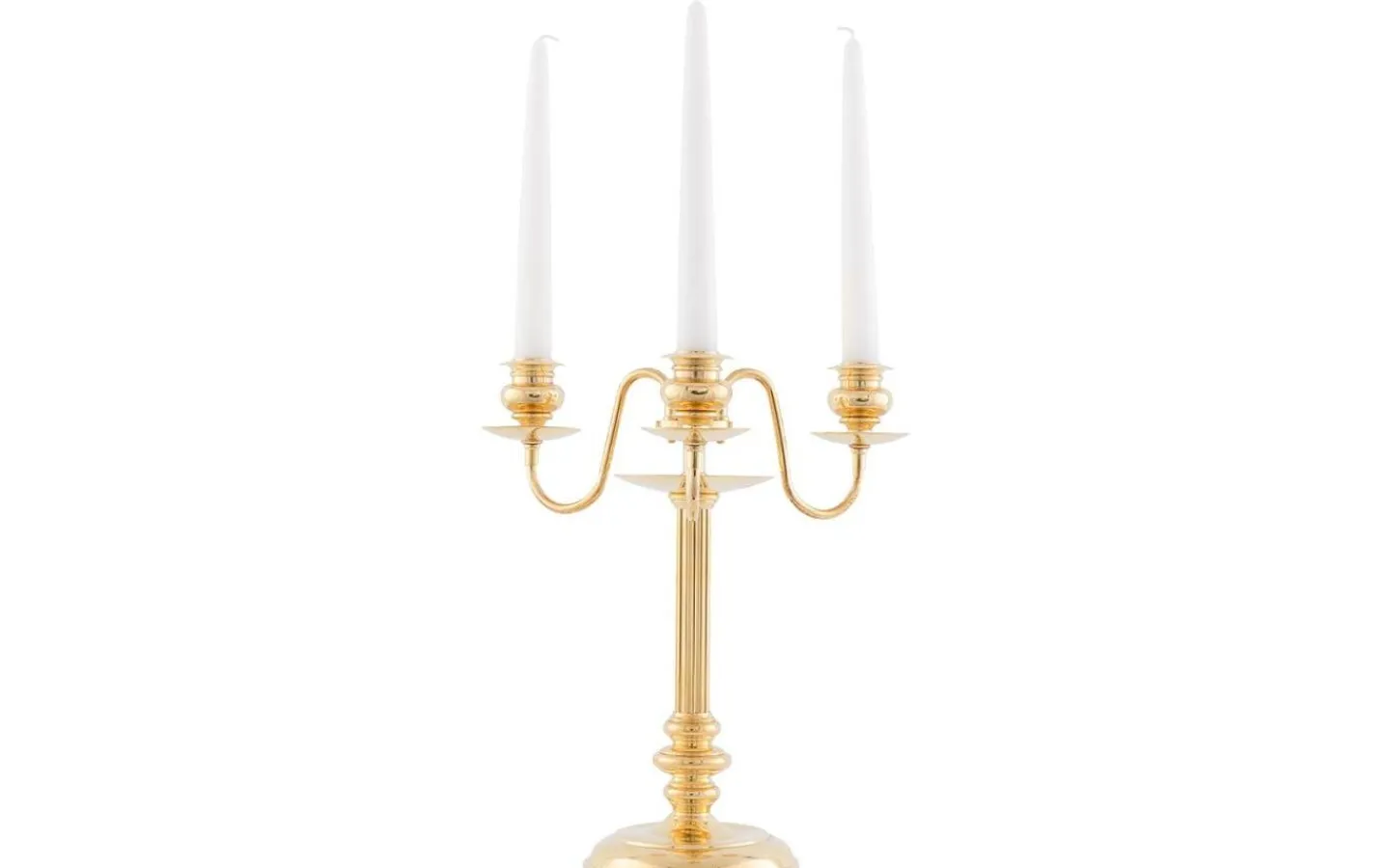 En klassisk mässingskandelaber där ljusarmshållaren har tolv hål och armarna går att flytta runt så att det blir en två-, tre-, fyra- eller sexarmad kandelaber. Framtagen efter en äldre förlaga till Frimurarna som ceremonikandelaber. Polerad mässing 40×25 cm (utan ljus)