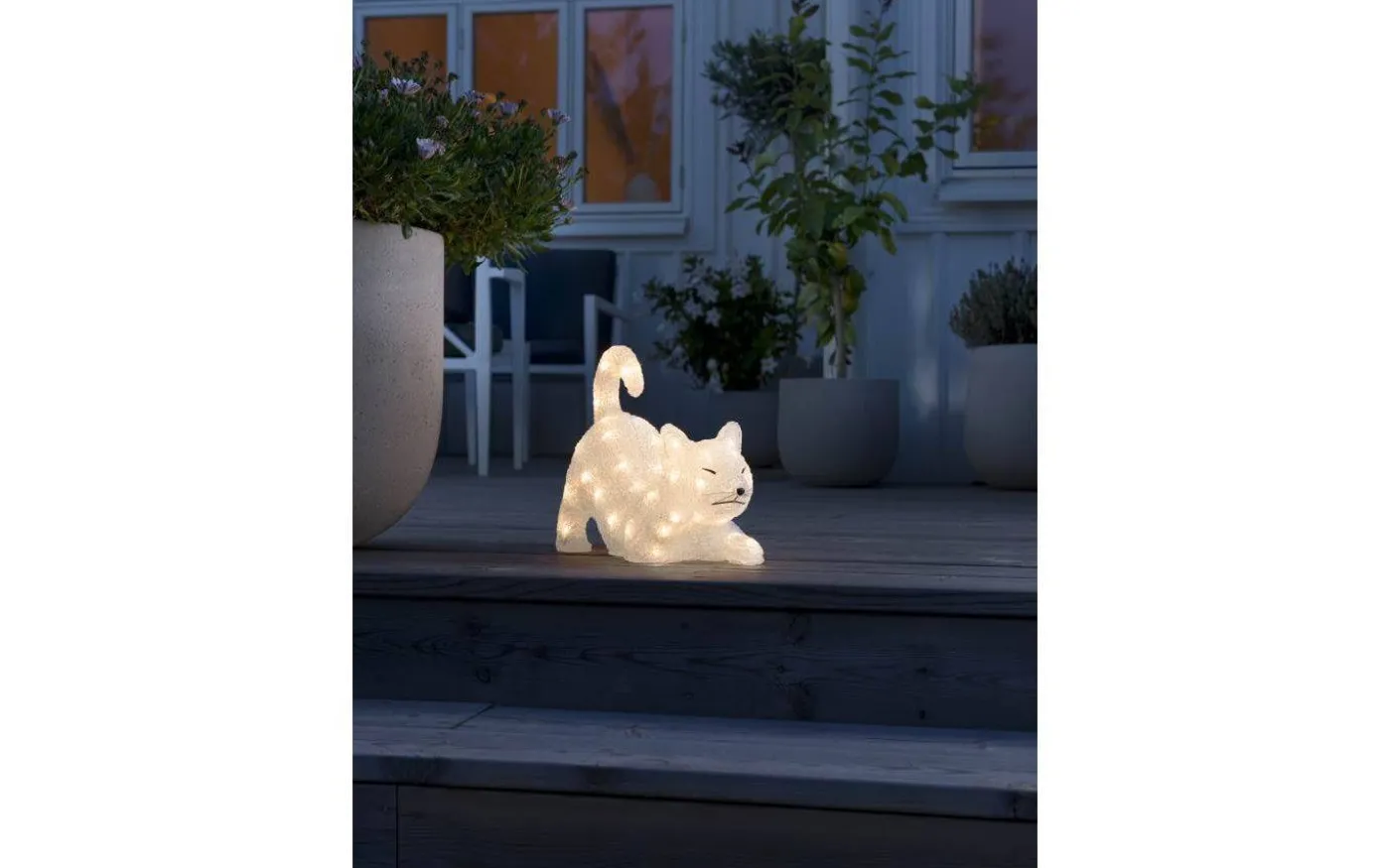 Härlig utomhusdekoration i form av en liggandes katt i akryl från Konstsmide.