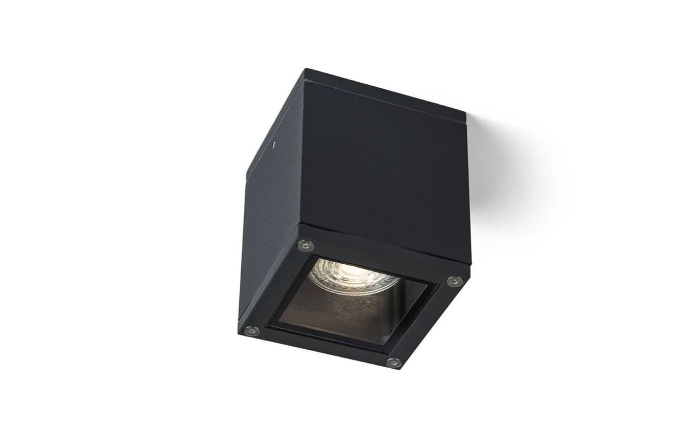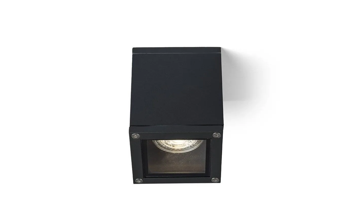 Denna eleganta vägglampa är gjord av aluminium snyggt lackerad i svart och klart glas med höga kapslingsklassen IP65. Avsedd för fast installation med 230V.