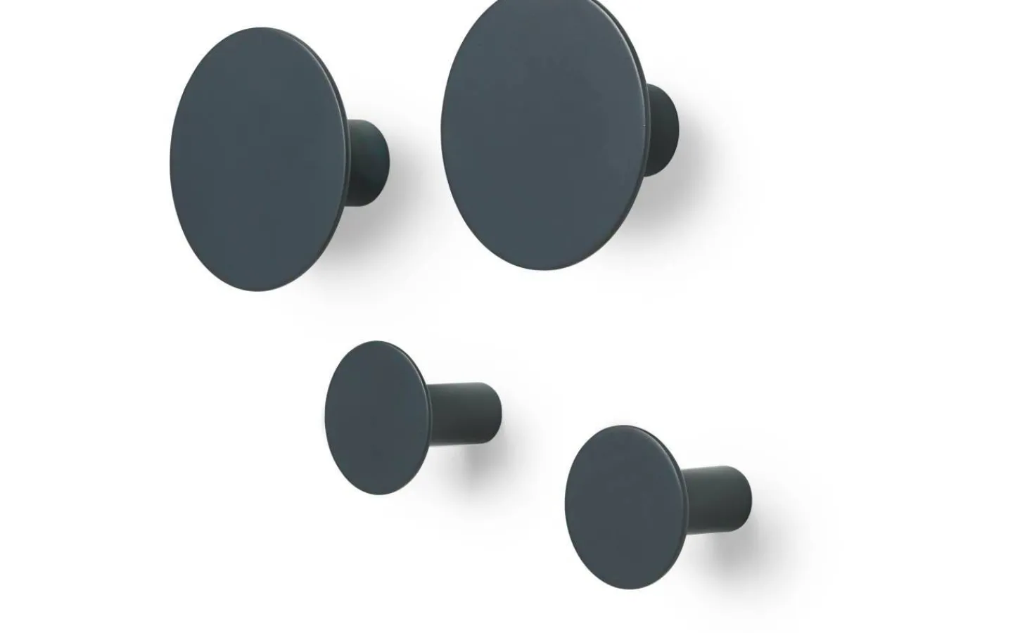 Ponto väggkrokar från Blomus är ett set om 4st väggkrokar och kommer i två olika storlekar, 2x 8,5cm och 2x 5cm, samtliga har ett djup på 4,5cm. Väggkrokarna är tillverkade i polystone och är i färgen Gunmetal.