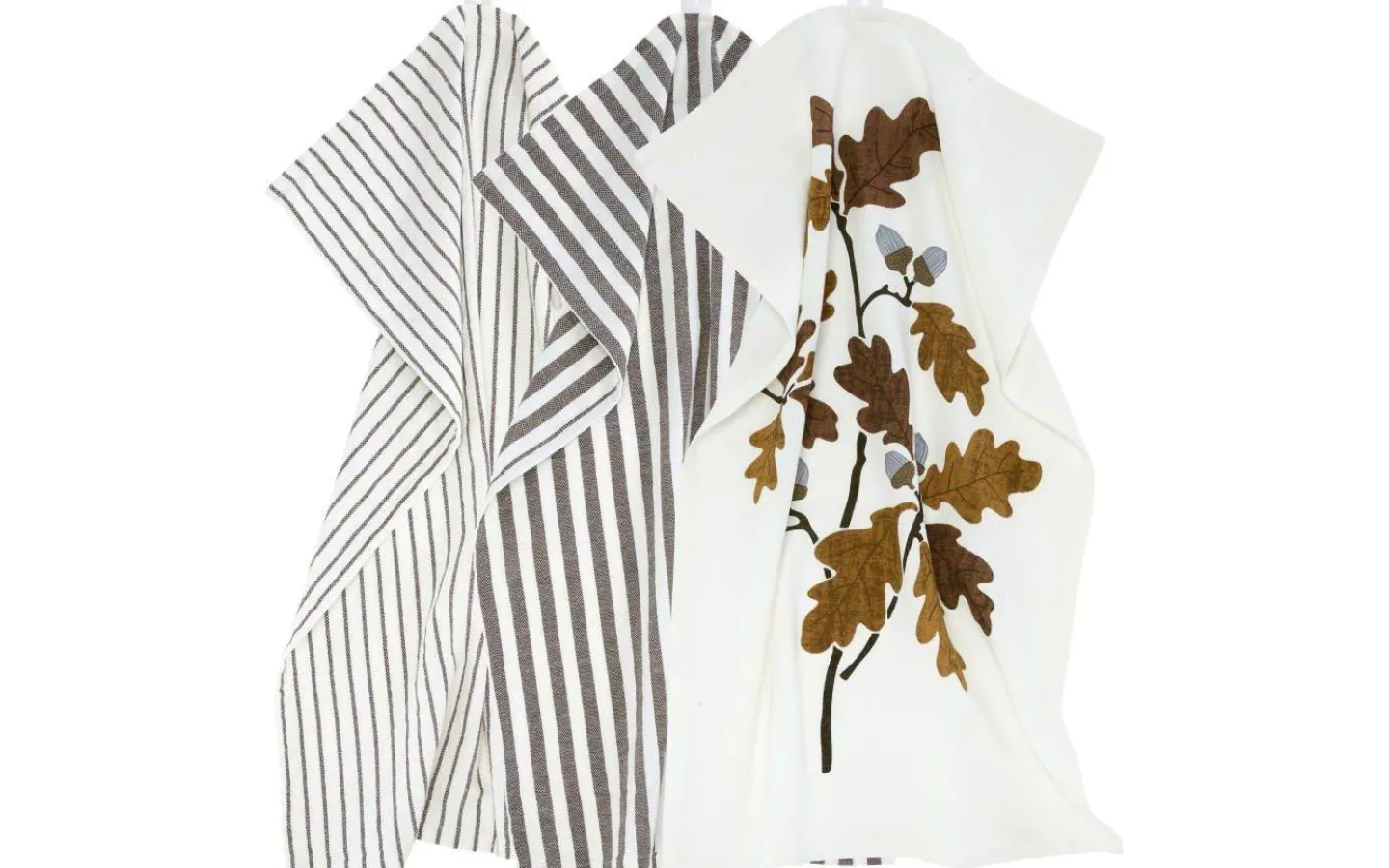 3-pack kökshanddukar med två garnfärgade ränder samt ett tryckt motiv. Kökshandduken i mjuk bomull har en lätt tvättad effekt. Mått 47x70cm. Produkten är certifierad enligt STANDARD 100 by OEKO-TEX®. Certifieringen garanterar att produkten är testad och fri från ämnen som kan vara skadliga för hälsan och miljön.