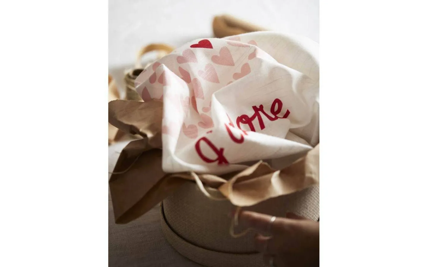 Kökshandduk med tryckt mönster. Storlek 50x70cm och hank i ena hörnet.