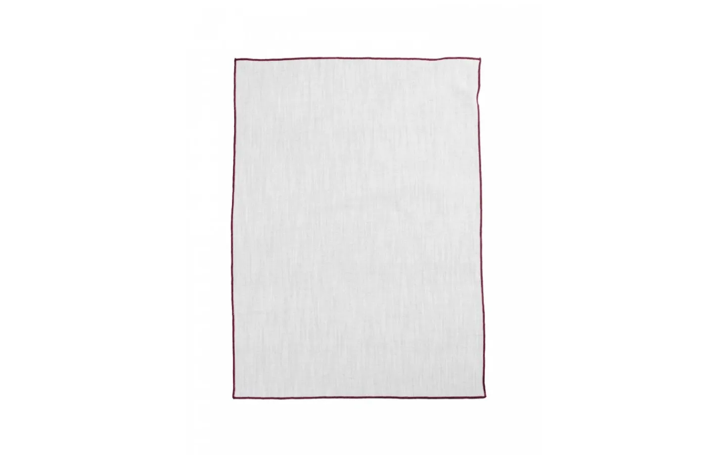 Kökshandduk i bomull/linnemix med overlockade kanter i en vintrig vinröd ton. Tyget är chambrayvävt vilket förstärker den linneliknande känslan. Storlek 50x70cm och en färgmatchad hank. Produkten är certifierad enligt STANDARD 100 by OEKO-TEX®. Certifieringen garanterar att produkten är testad och fri från ämnen som kan vara skadliga för hälsan och miljön. 30 grader skontvätt Klorblekmedel får ej användas Får ej torktumlas Tål strykning med hög temperatur Kemtvätt (Perkloretylen)