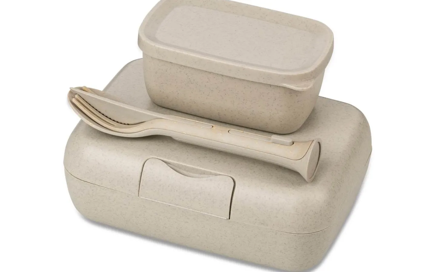 Candy matlådor med bestick från Koziol är tillverkad i 100% återvinningsbar biocirkulär termoplast. I detta set ingår två stycken beigea matlådor och ett set bestick innehållandes en gaffel, en kniv och en sked i samma matchande färg som kommer från serien Klikk. Med detta set kan du enkelt och smidigt förvara sallader, dressingar, grönsaker, smörgåsar och frukt åtskilda i de olika lådorna och äta på obestämd plats!