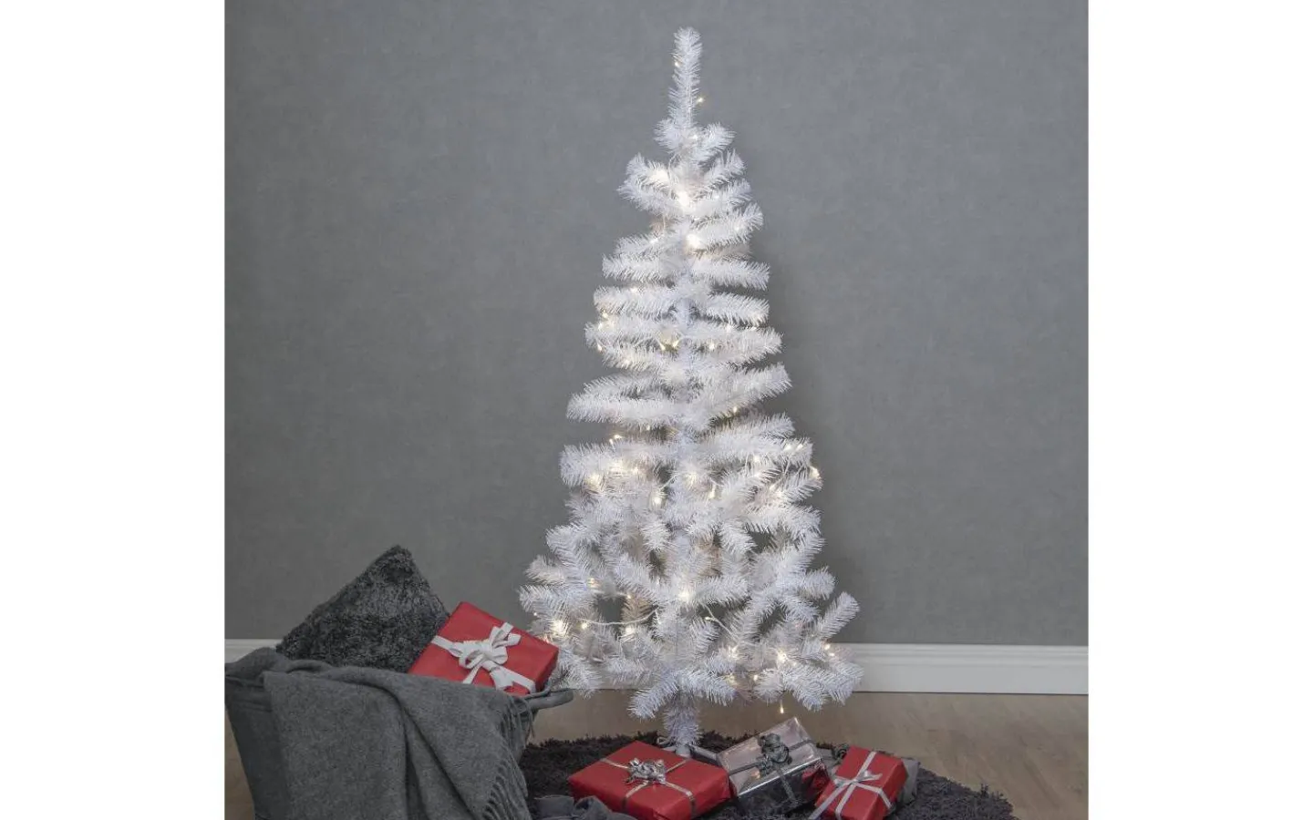 Denna konstgran har 80 stycken inbyggda LED-lampor som lyser i ett kalltvitt sken. Granen levereras komplett med 5 meter lång sladd med transformator och stickkontakt för vägguttag.