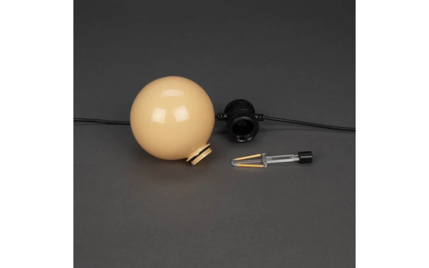 Färgglad partyslinga med lite större kupor och batterilåda med solceller. Passar perfekt där det saknas eluttag. 10 st pastellfärdade kupor och varmvita utbytbara LED. Inkl. solpanel och batteribox, fjärrkontroll med timer 4/6/8 timmar. Dimmer, sensor och multifunktion. Markspets och USB-kabel på 1,8m ingår. Lampavståndet är 50 centimeter. Anslutningssladden är 10 meter vilket ger en totallängd på 14,5 meter.