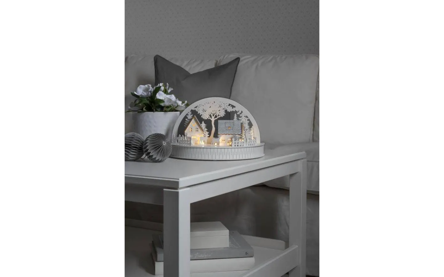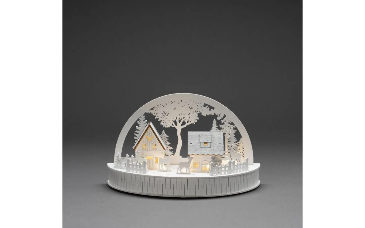 Batteridriven bordsdekoration från Konstsmide med 5st små LED-lampor som lyser upp gården i ett härligt varmvitt ljussken. Bordsdekorationen har inbyggd timerfunktion vilket innebär att du tänder den en gång vid önskad tidpunkt sedan lyser den i 6 timmar och tänds igen samma tidpunkt dagen efter.