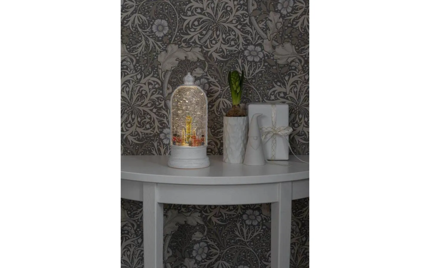 Glittrande vattenfylld lykta från Konstsmide som passar perfekt på många platser i ditt hem för att uppnå en riktig härlig julkänsla. När produkten är påslagen rör sig vätskan och glittret runt och skapar en magisk effekt.