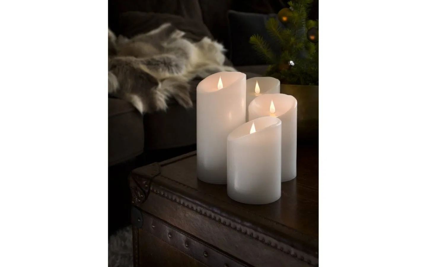 Vackert batteridrivet blockljus, från Konstsmide, gjort i vax med en vit finish. Detta batteridrivna ljus har en fin låga som lyser i ett varmvitt ljussken och skiftar i ljusstyrka för att avge ett verklighetstroget intryck.