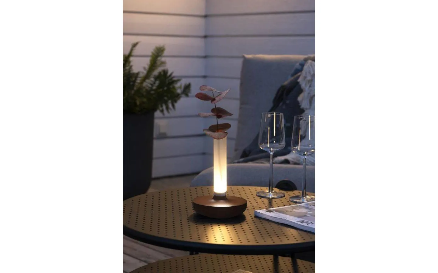 Biarritz är en batteridriven, uppladdningsbar bordslampa från välkända Konstsmide. Bordslampan är tillverkad i rostfritt stål med frostat glas som även går att använda som en vas. Perfekt till uteplatsen, balkongen eller att ta med i husvagnen! Den inbyggda LED-lampan går att dimra mellan 10 lumen upp till 50 lumen, du kan även reglera färgtemperaturen välj mellan 1800K, 3000K och 4000K. Perfekta lampan för att skapa en härlig atmosfär under sommarkvällar på uteplatsen!