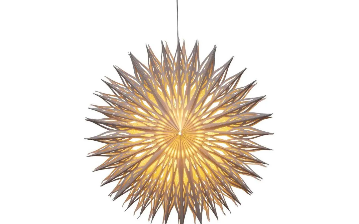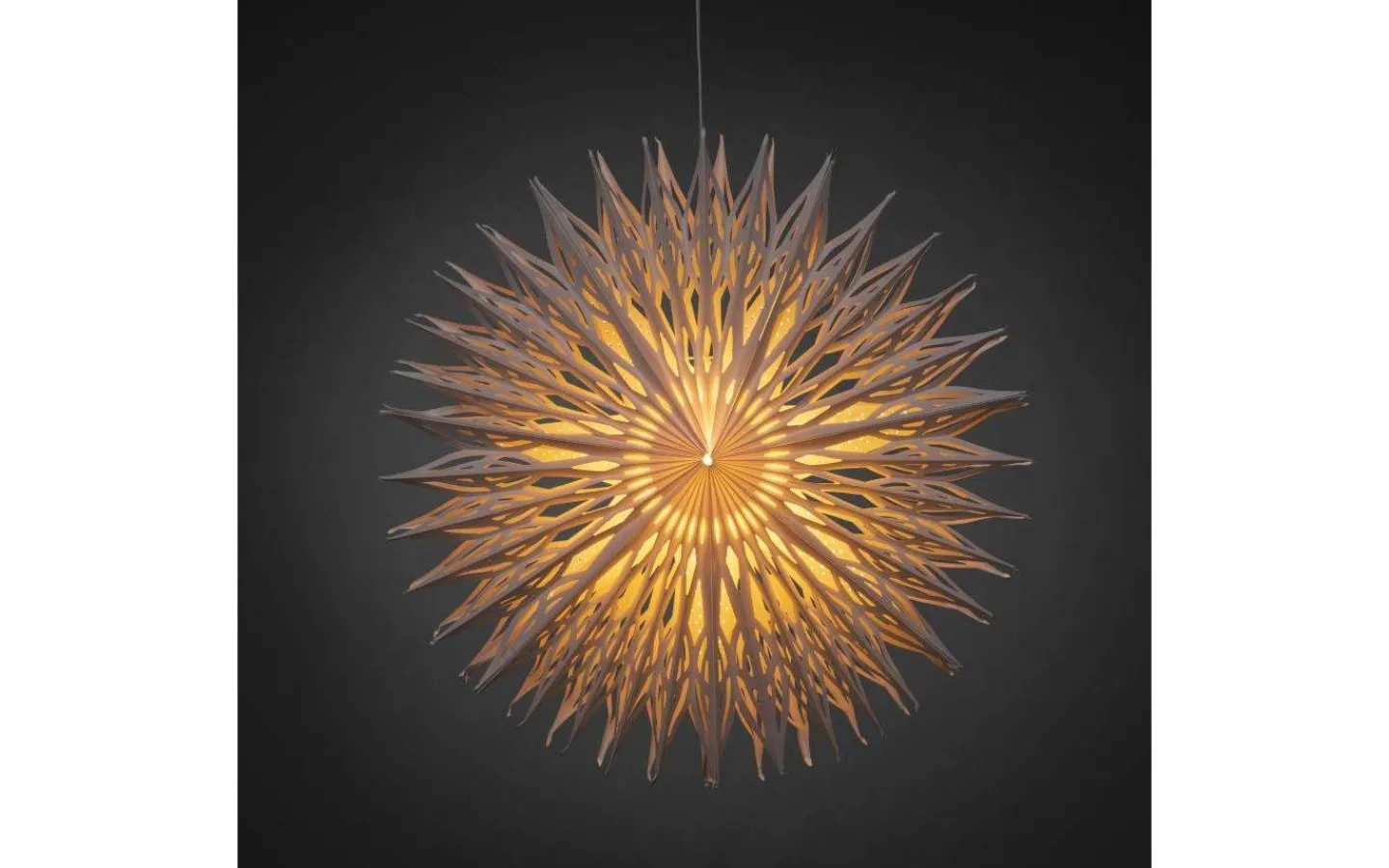 Blom julstjärna från Konstsmide är gjord i papp. Det fina mönstret gör att stjärnan släpper genom ett mysigt ljusflöde.