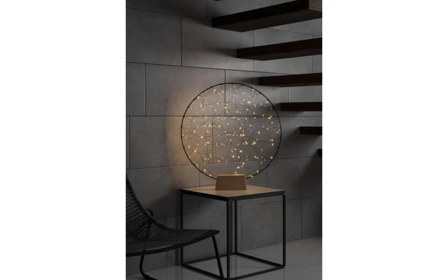 Härlig bordsdekoration från Konstsmide i svart metall med träbas. Bordsdekorationen är försedd med 160st små LED-lampor som lyser i ett härligt extra varmvitt ljussken.