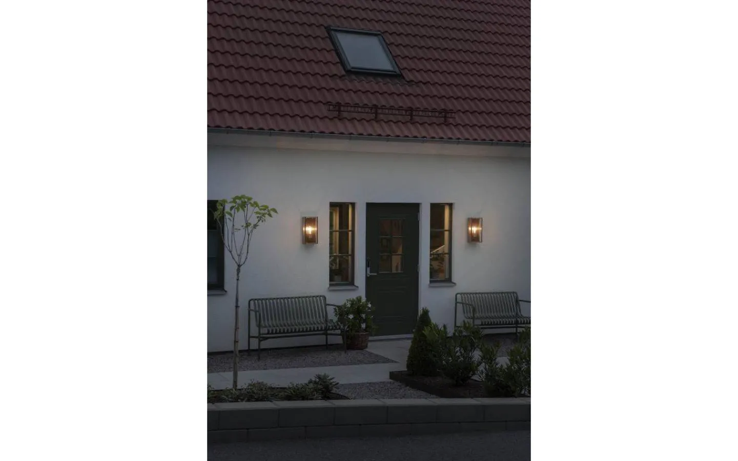 Carpiär en modern och stilfull vägglykta från välkända Konstsmide. Vägglampan är gjord av metall med klart glas som avger en vacker ljusspridning både framåt och åt sidorna. Installeras smidigt med 230V.