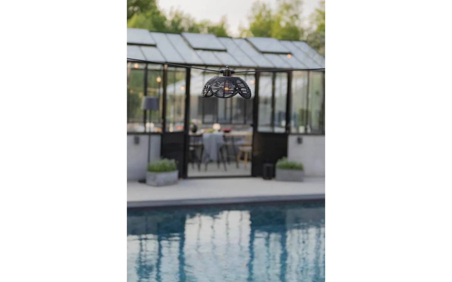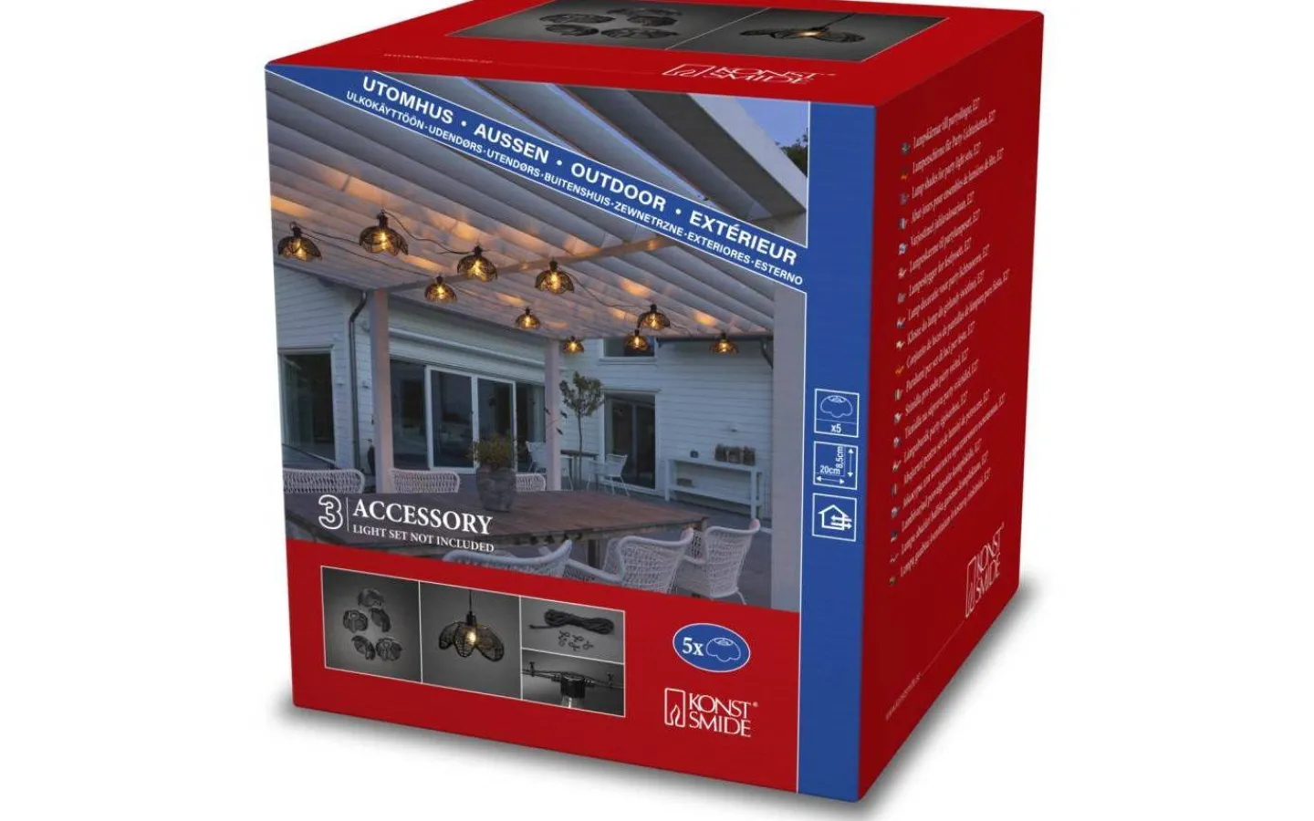 Flower från Konstsmide är ett 5-pack dekorativa lampskärmar i konstrotting. Perfekta att sätta på partyslingor eller att hänga ensamma med passande sladdställ för utomhusbruk.