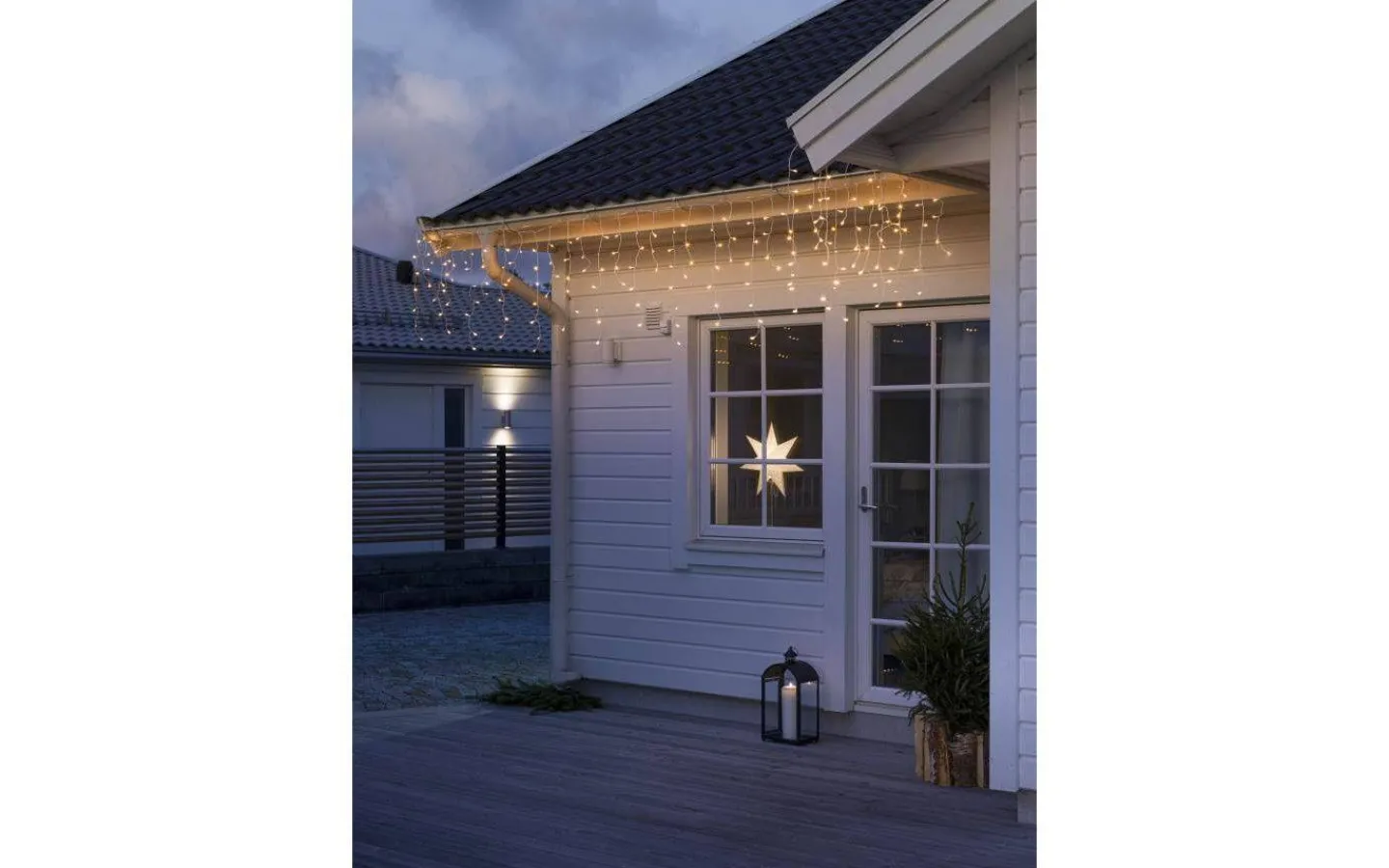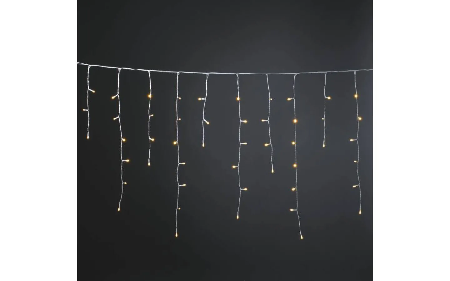 Härlig istappsslinga från Konstsmide med 200st små frostade LED-lampor som lyser upp i ett vackert extra varmvitt ljussken. Perfekt att hänga längs husfasaden för högre mysfaktor!