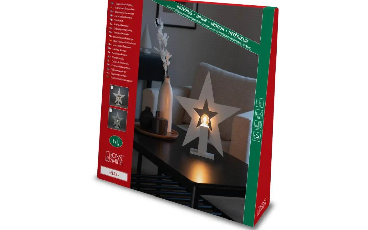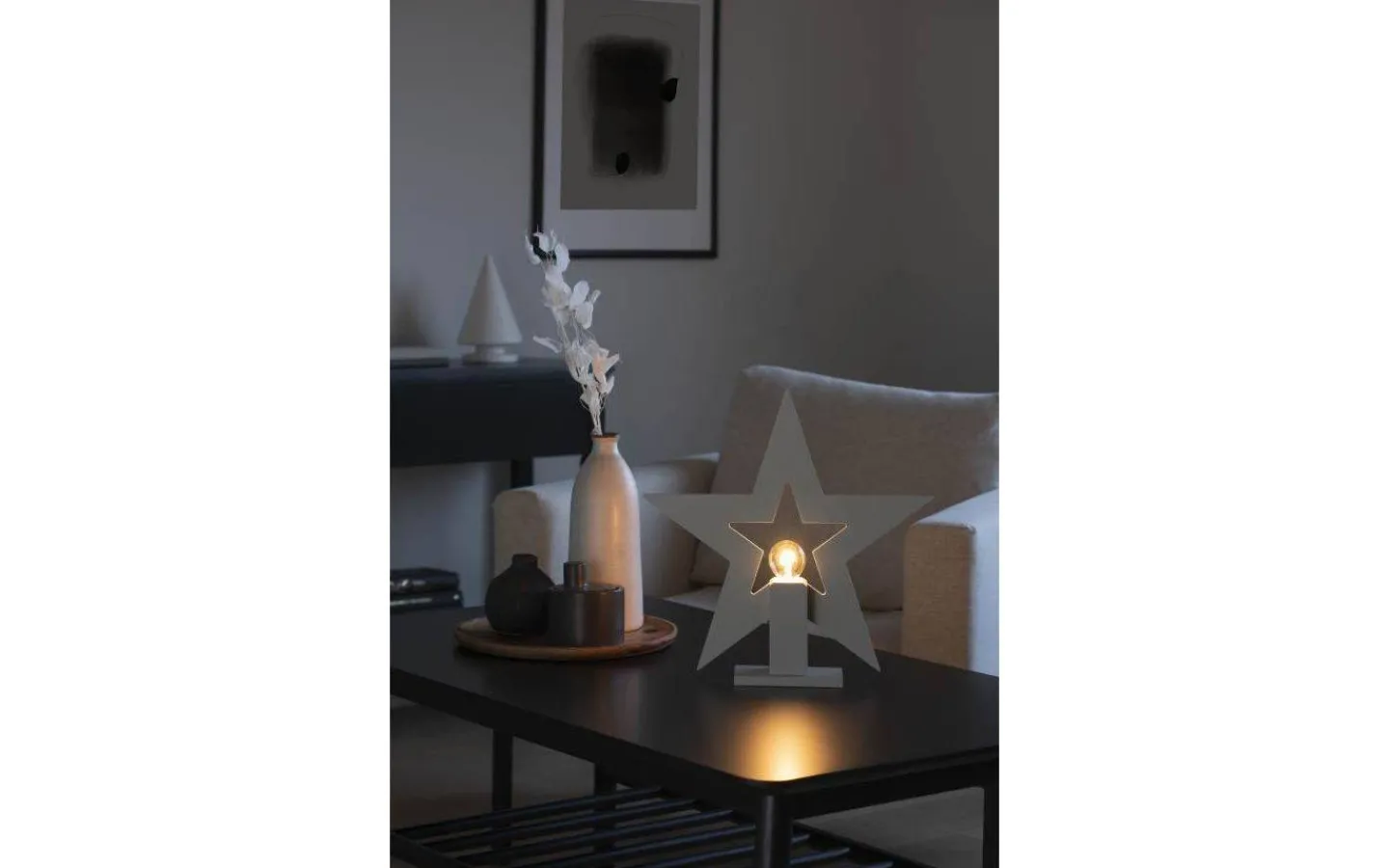 Denna härliga julstjärna på fot från Konstsmide är tillverkad helt i trä. Komplettera med en dekorativ ljuskälla och skapa en magisk stämning till jul! Julstjärnan levereras med en 1,7m lång anslutningskabel med strömbrytare och stickkontakt för vägguttag.