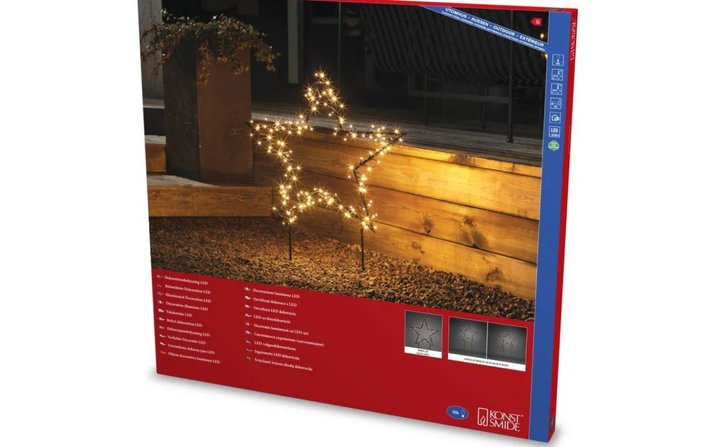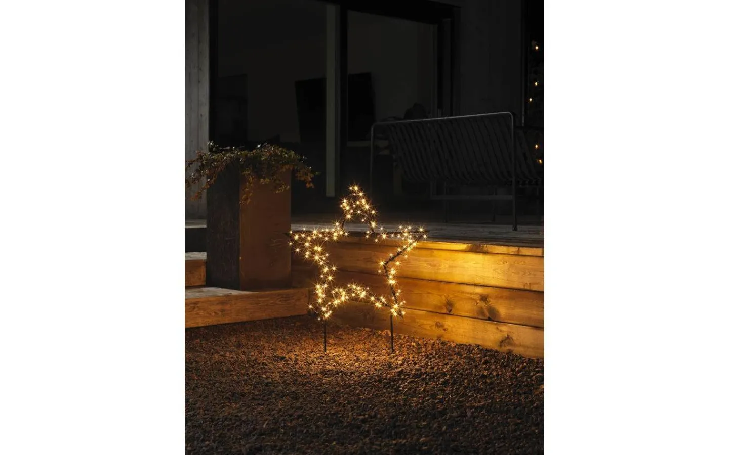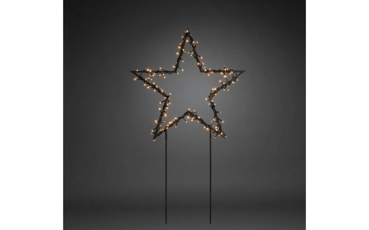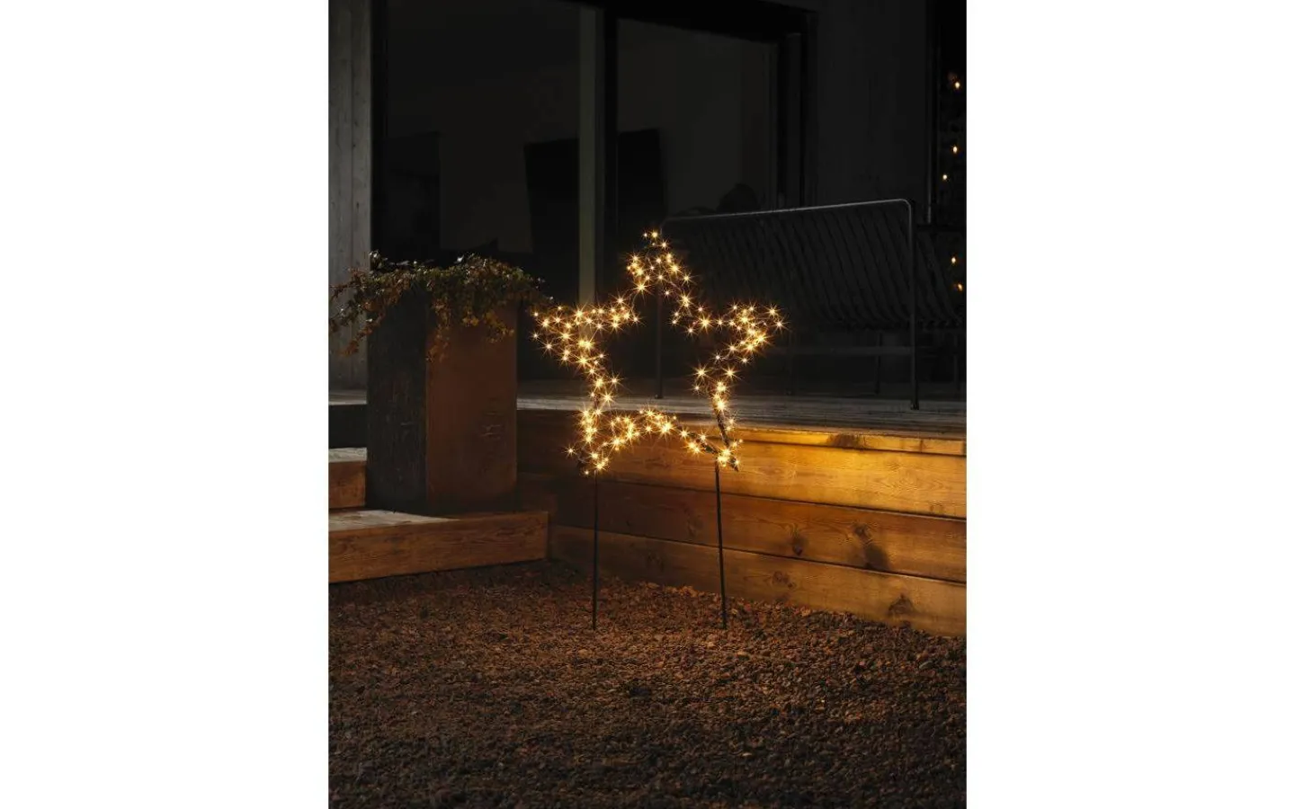 Sparv från Konstsmide är en härlig utomhusdekoration. Denna dekoration en större stjärna på spett i svart metall. Stjärnan är försedda med små LED-lampor som lyser upp i ett härligt extra varmvitt ljussken.