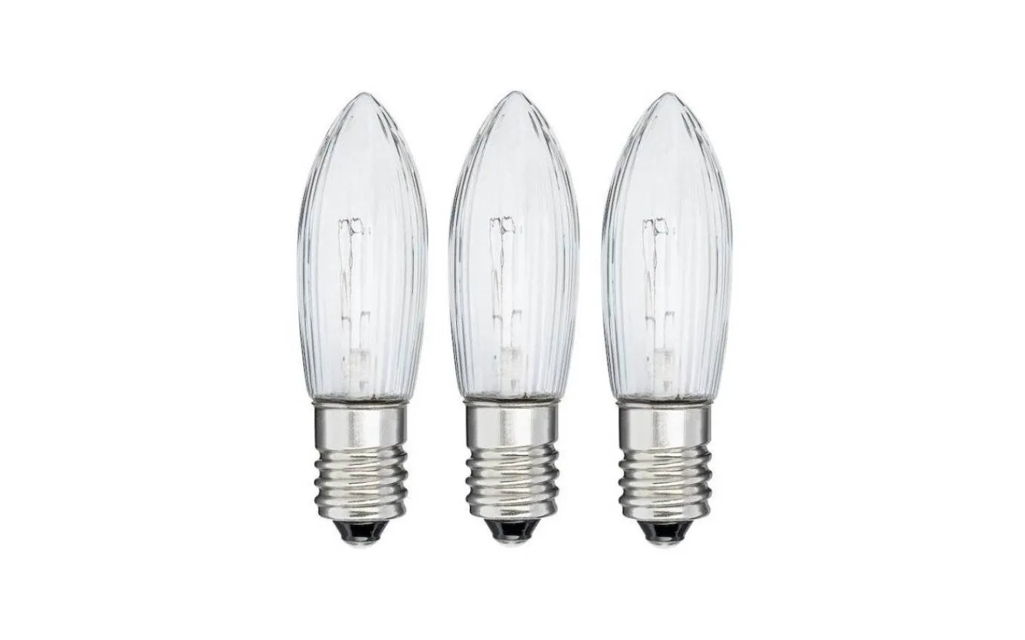 Reservlampor till adventsljusstake, i räfflat klarglas. E10-sockel, 24 volt och 1,8 watt. Säljes i 3-pack.