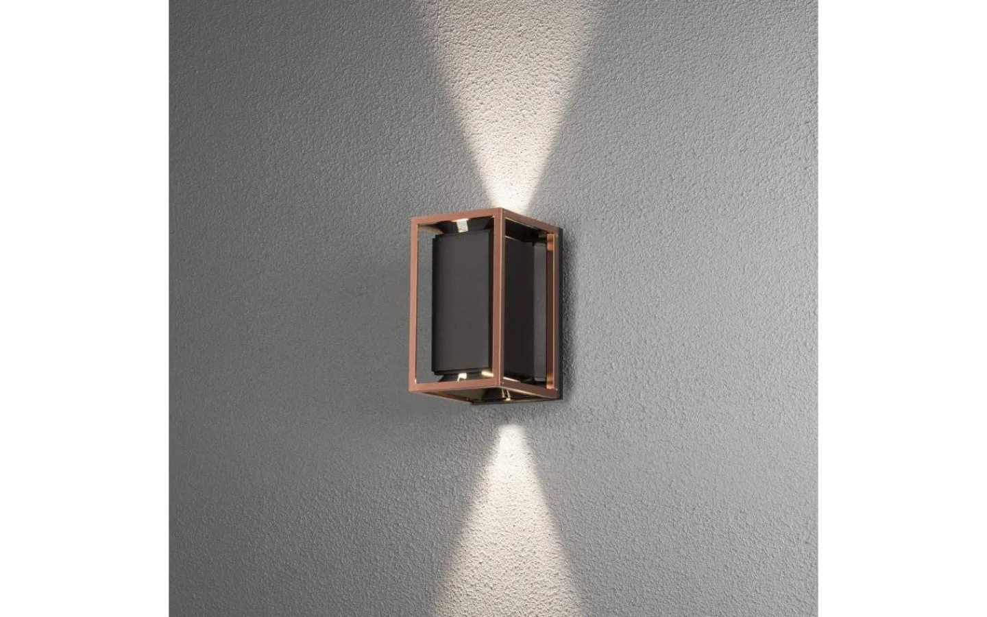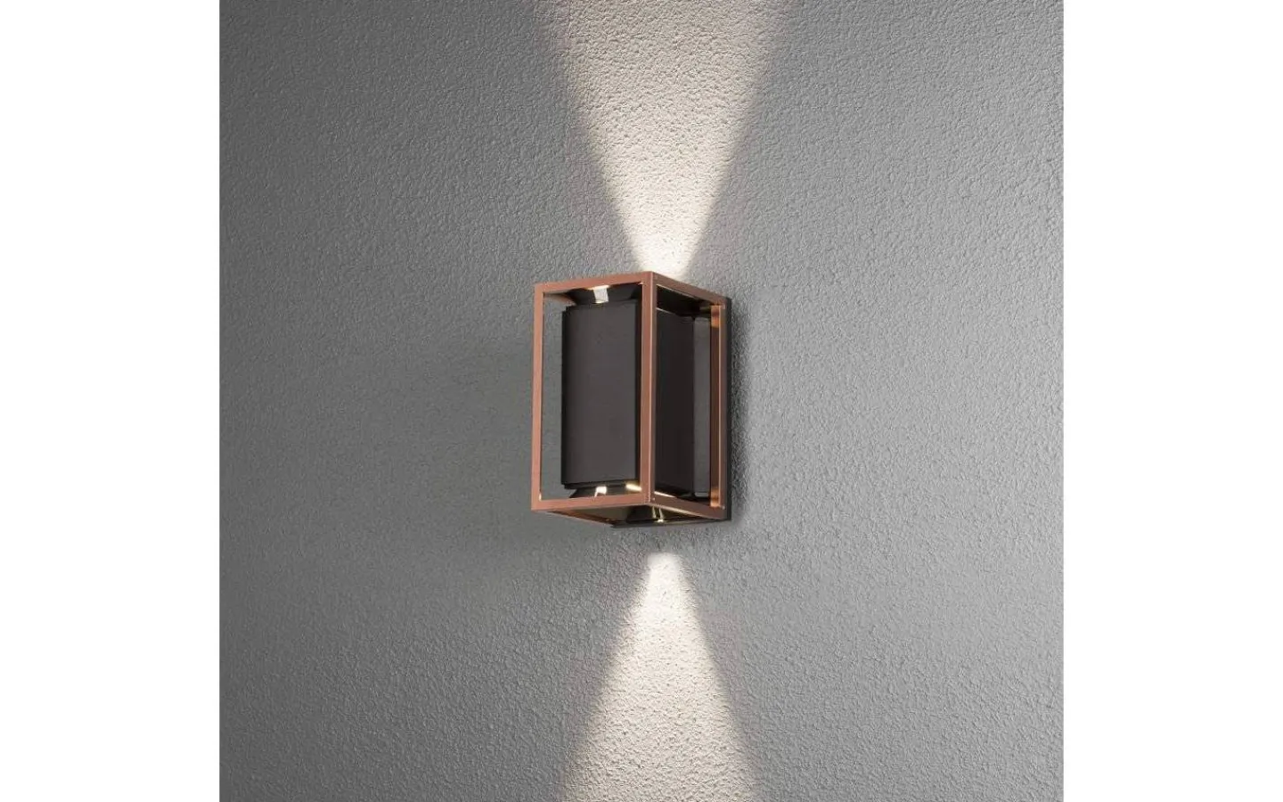 Denna högkvalitativa vägglampa är tillverkad av aluminium i svart och koppar. Vale har inbyggd LED och en ställbar ljusbild som reflekteras uppåt och nedåt och regleras enligt tycke och smak. Installeras smidigt med 230V.