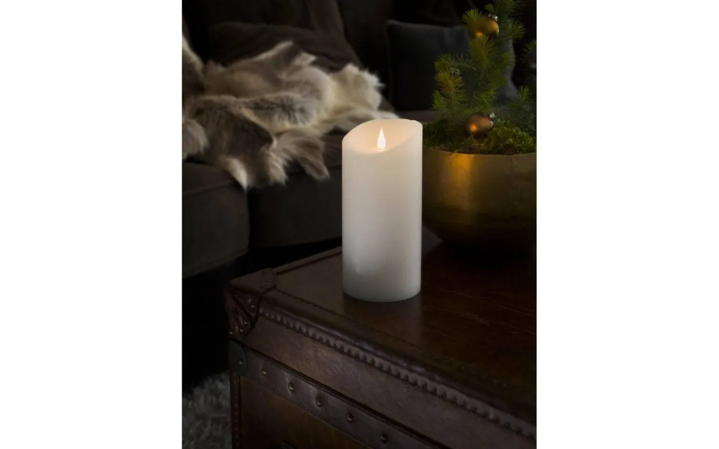 Vax blockljus från Konstsmide är ett verklighetstrogna blockljus i LED. Detta fina blockljus i vax har en 3D-låga som lyser i ett mysigt varmvitt ljussken.