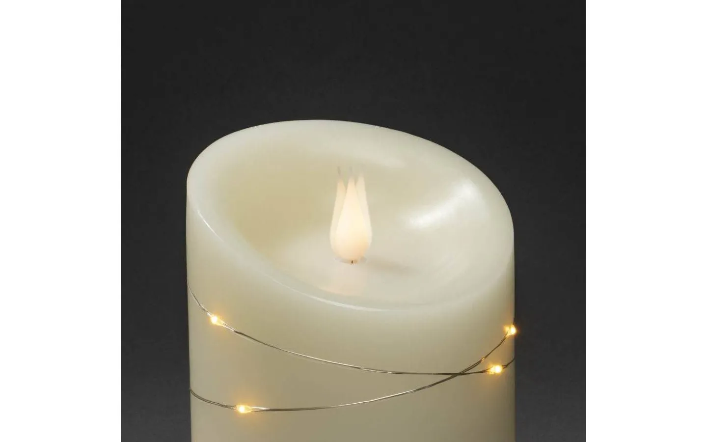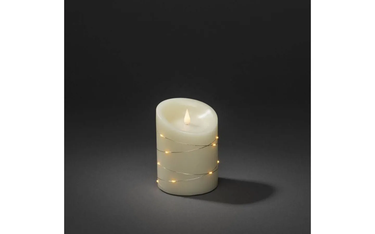 Vax blockljus från Konstsmide är ett verklighetstrogna blockljus i LED. Detta fina blockljus i vax har en 3D-låga som lyser i ett mysigt varmvitt ljussken. Runt det fina blockljuset ligger en ljusslinga med små LED-punkter som även dem lyser upp i ett härligt extra varmvitt ljussken.