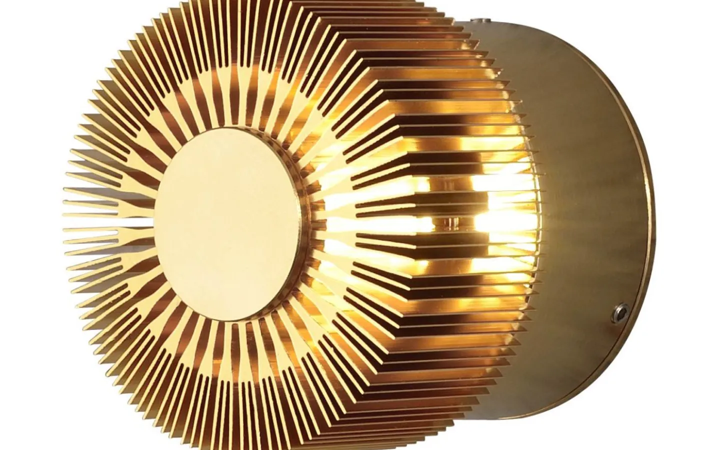 Denna högkvalitativa vägglampa är tillverkad av aluminium och snyggt lackerad i mässing. Den inbyggda ljuskällan avger ett behagligt, varmvitt ljus på 3W som reflekteras vackert mot fasaden. IP54 klassning och smidig installation med 230V.