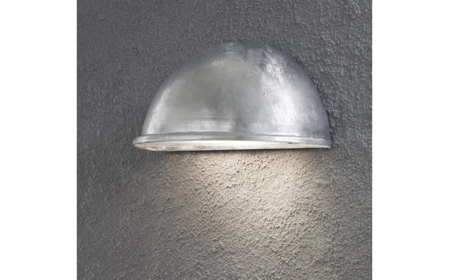 Denna stilrena och högkvalitativa vägglampa i halvmånemodell är tillverkad av galvaniserat stål med lättfrostat akrylglas. Ljusspridning nedåt som skapar en behaglig och trivsam ljusbild på fasaden.