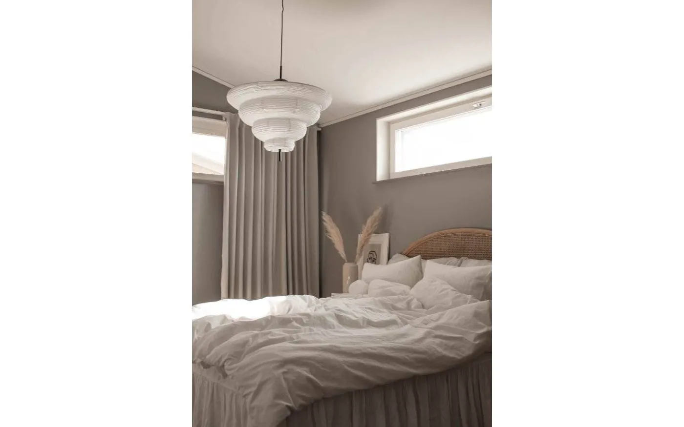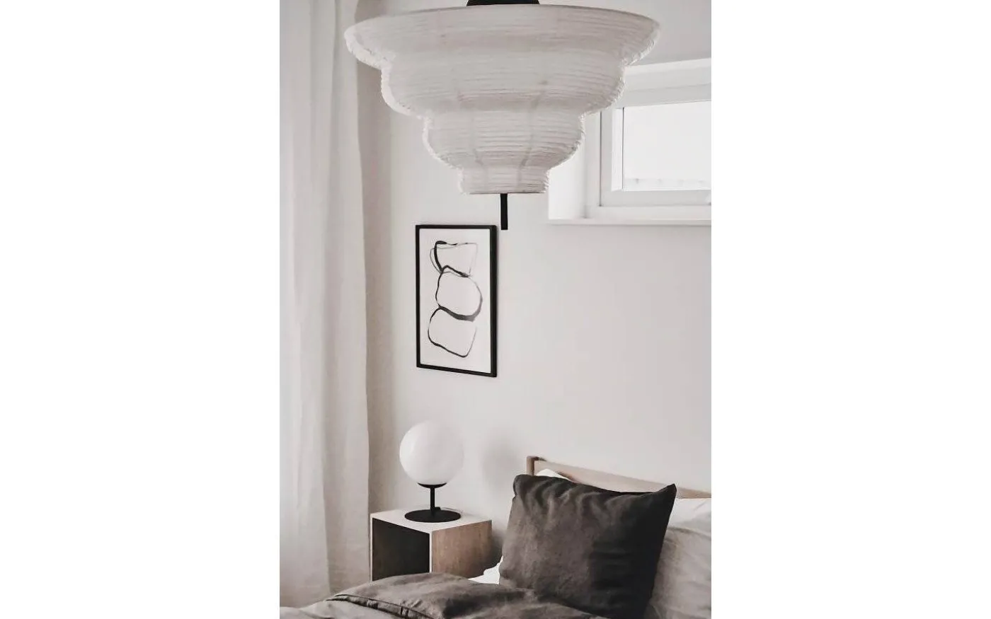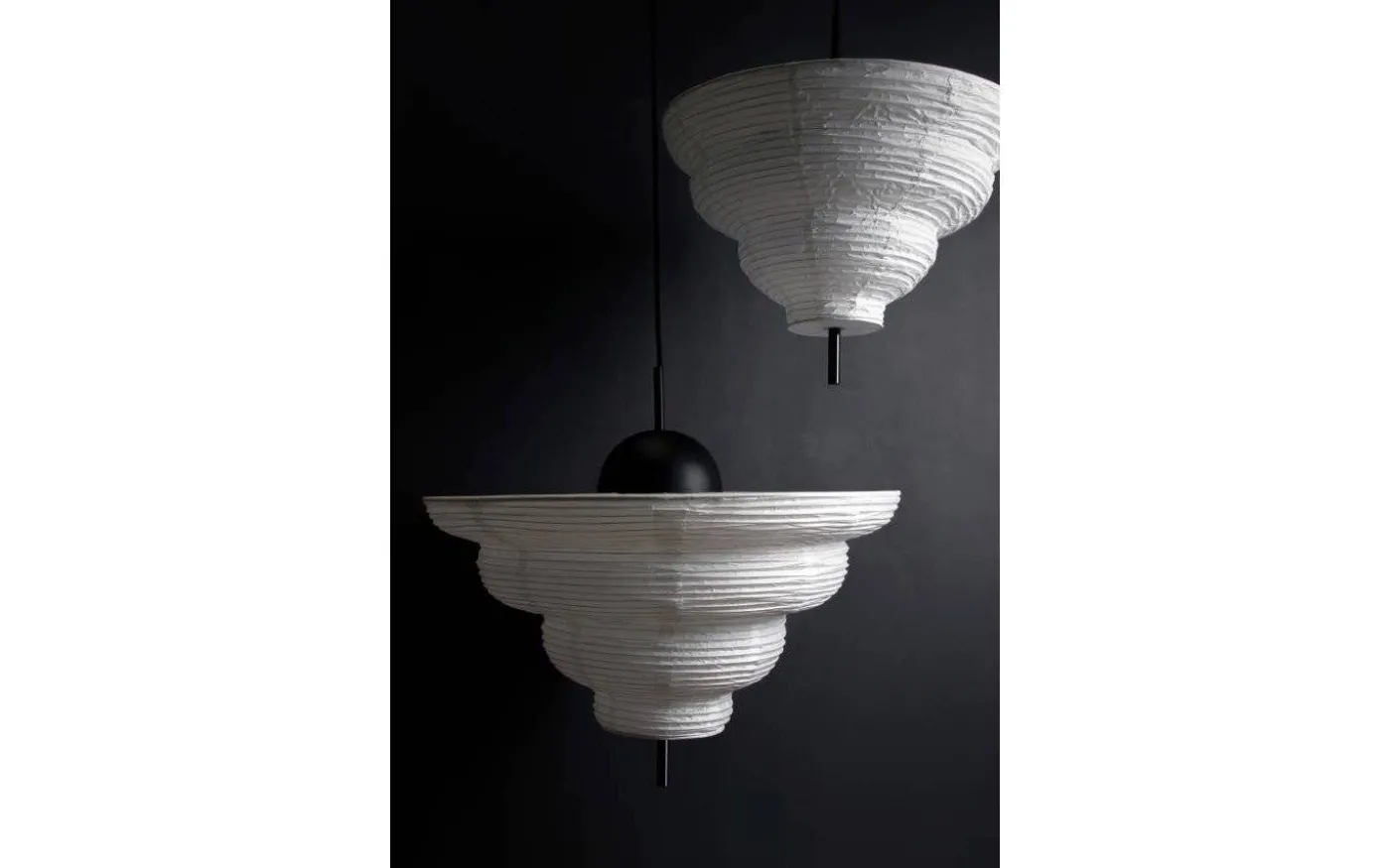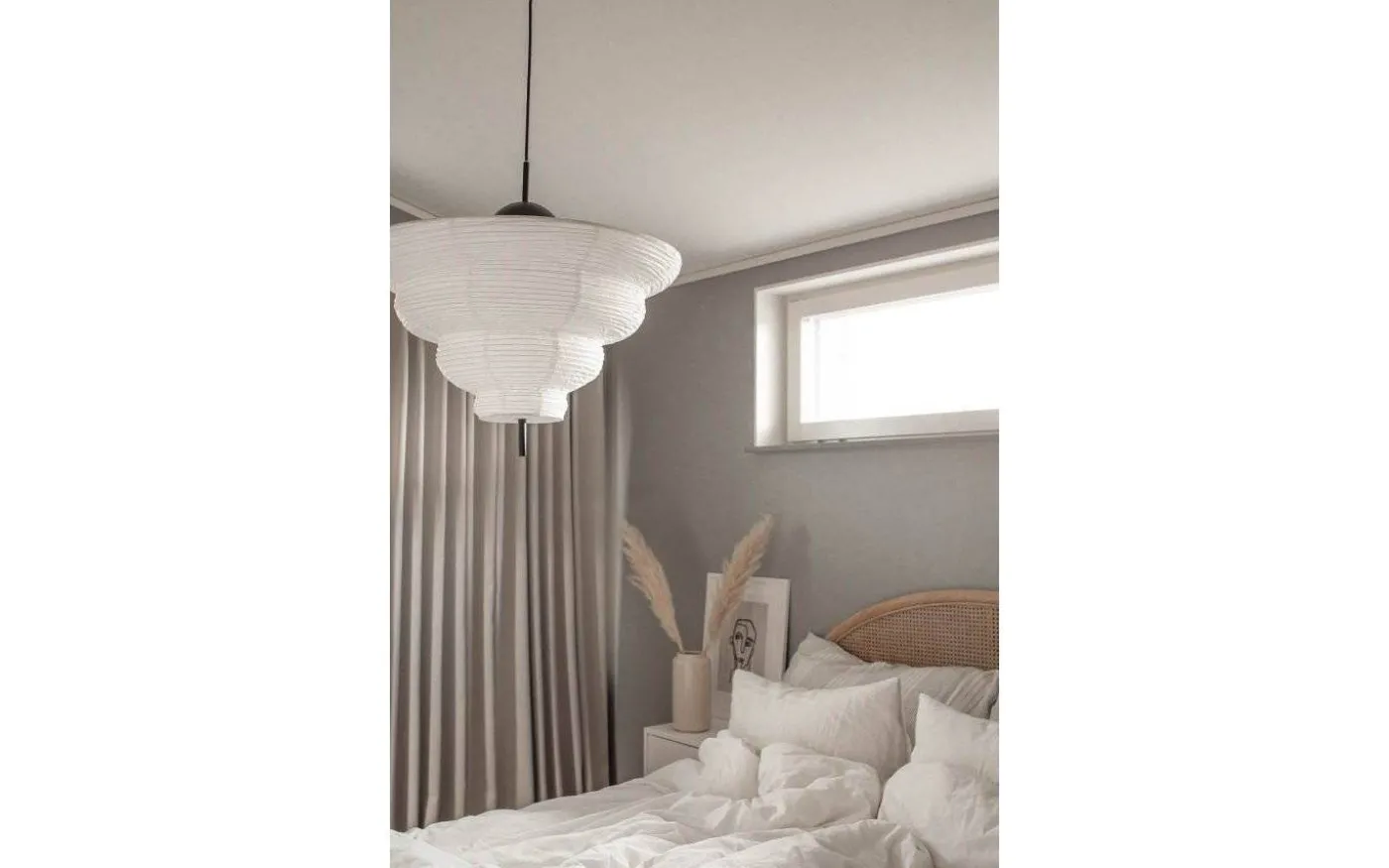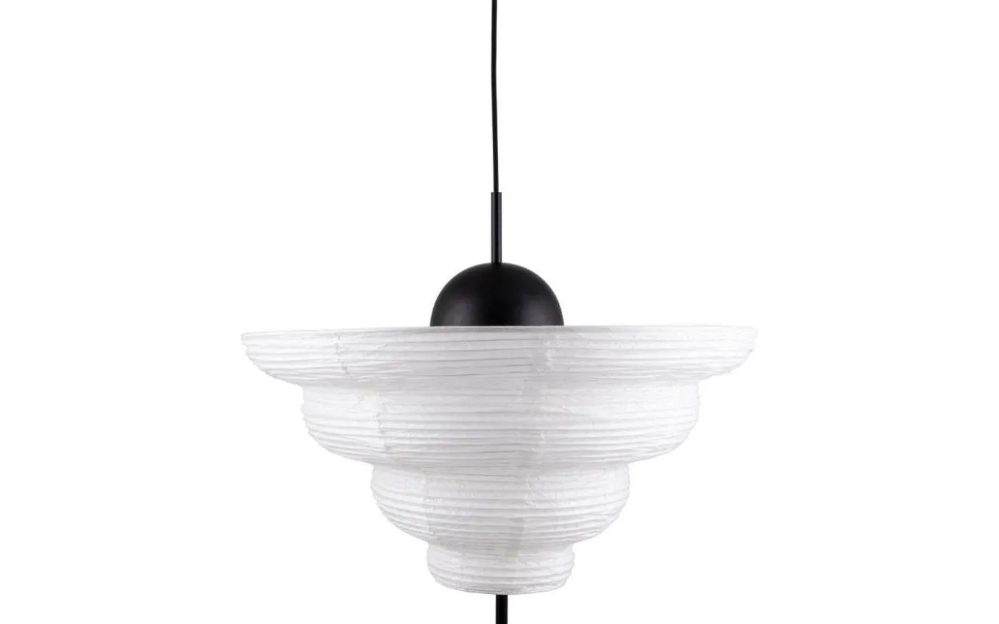 Med inspiration från Asien och den traditionella rislampan skapades taklampan Kyoto. Det tunna vita rispappret skapar ett behagligt ljus och i nederkant hänger en dekorativ svart metallpinne. Kyoto har en 120 cm lång svart kabel samt en takkopp i svart plast.