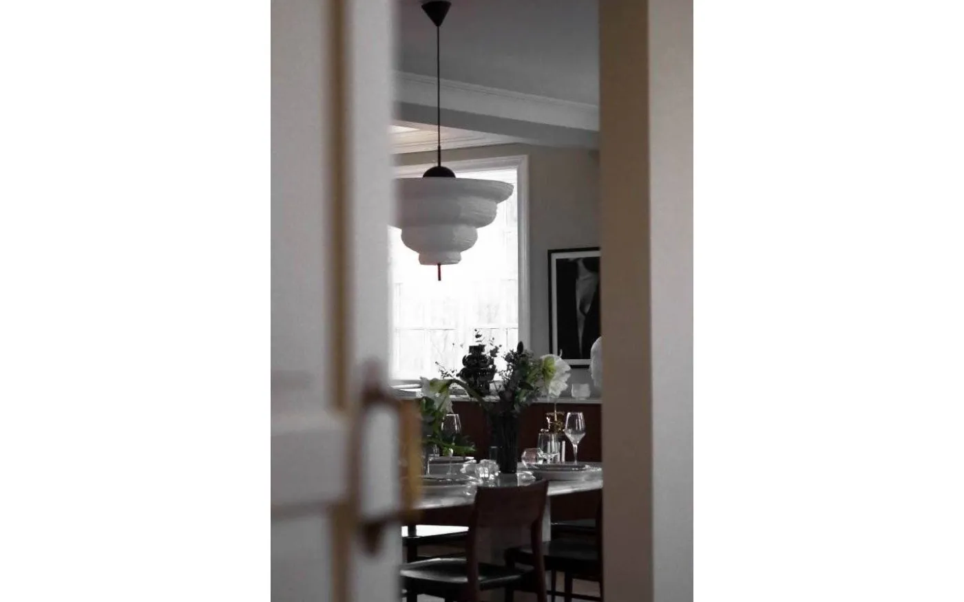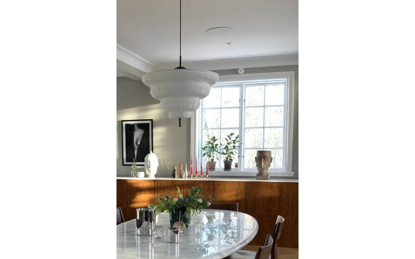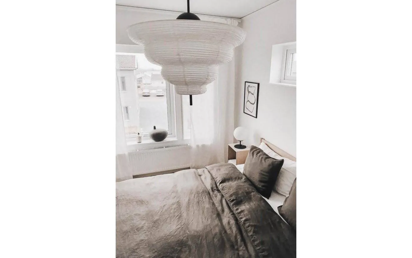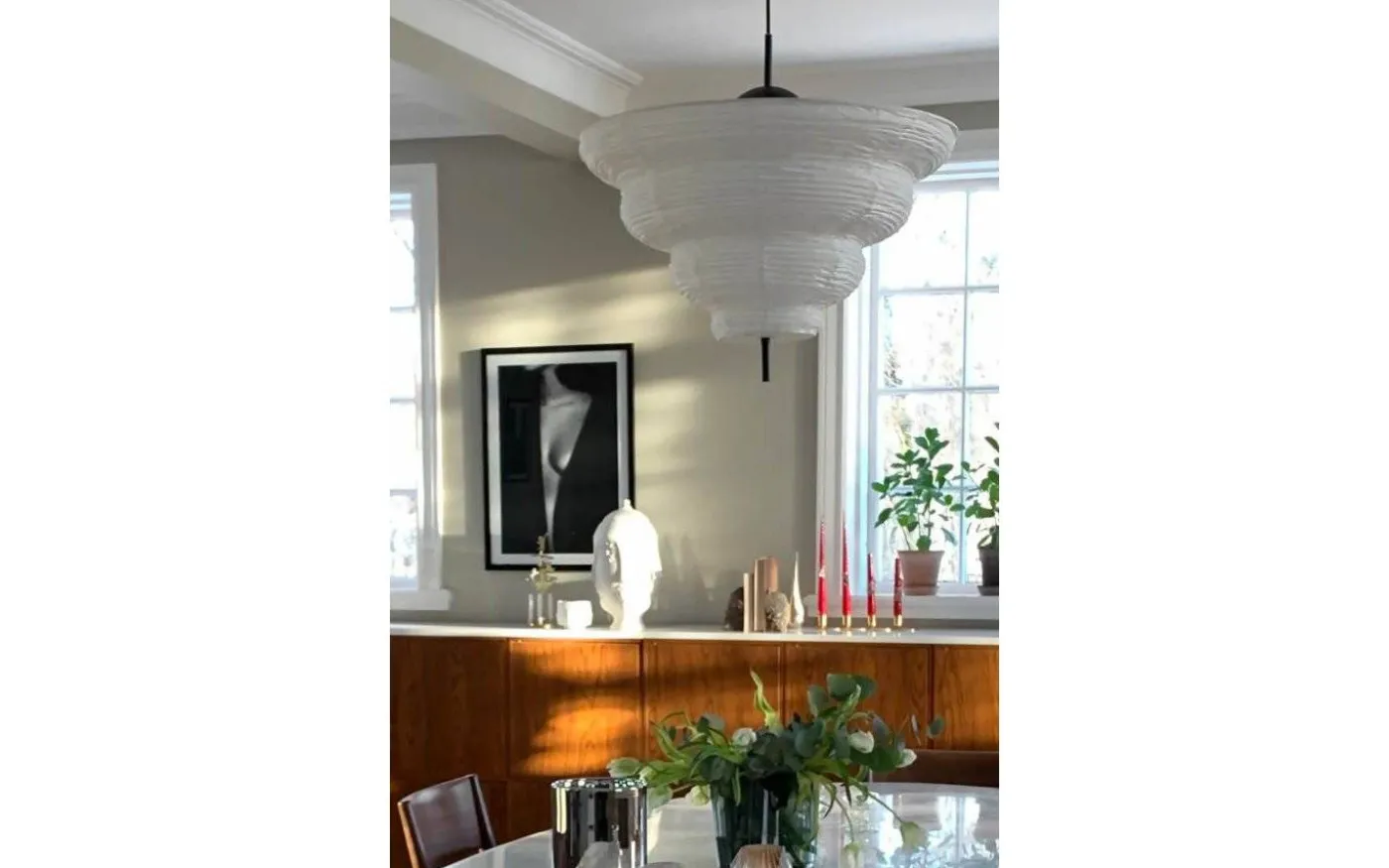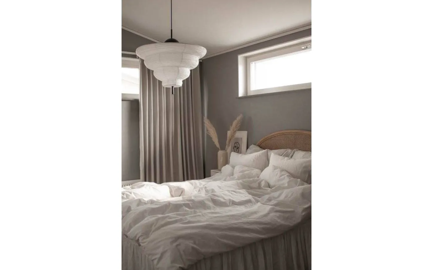 Med inspiration från Asien och den traditionella rislampan skapades taklampan Kyoto. Det tunna vita rispappret skapar ett behagligt ljus och i nederkant hänger en dekorativ svart metallpinne. Kyoto har en 120 cm lång svart kabel samt en takkopp i svart plast.